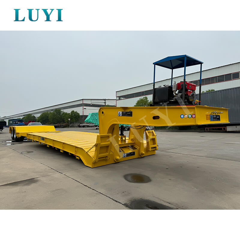 Luyi Avtagbara Gooseneck Lowboy Trailer kommer från Shandong, Kina och är en professionell semitrailer dedikerad till tunga transporter. Konstruerad med högkvalitativt kolstål, antar dess huvudbalk höghållfast Q345B/ST52-3 stål, vilket säkerställer en solid och hållbar struktur. Mäter 12000mm × 2500mm × 1650mm, den är lämplig för olika arbetsscenarier.