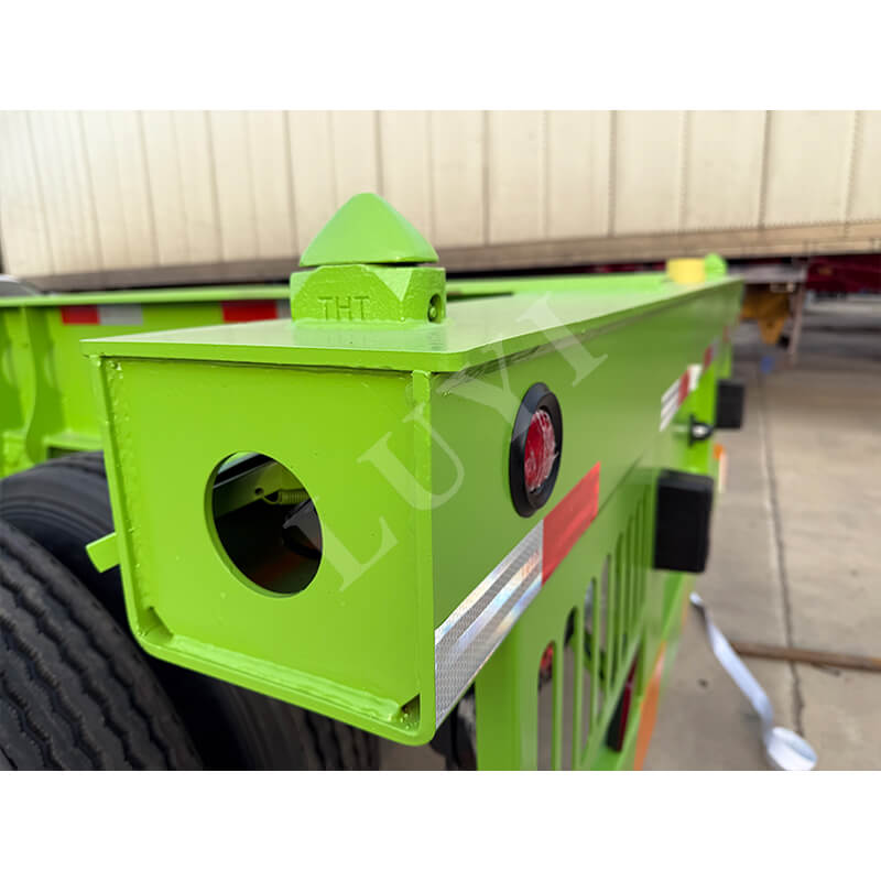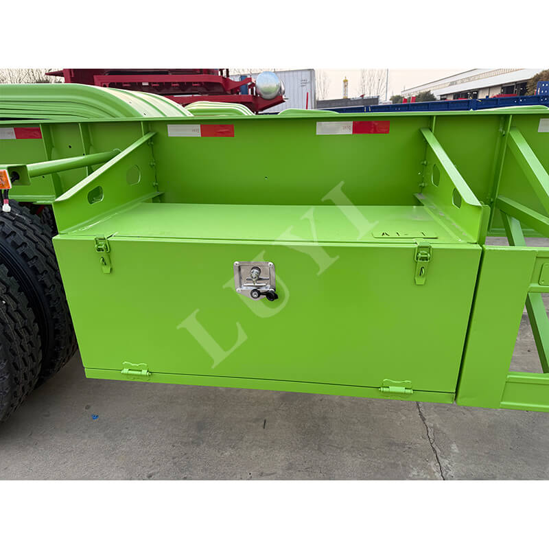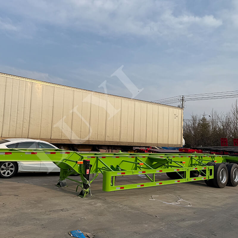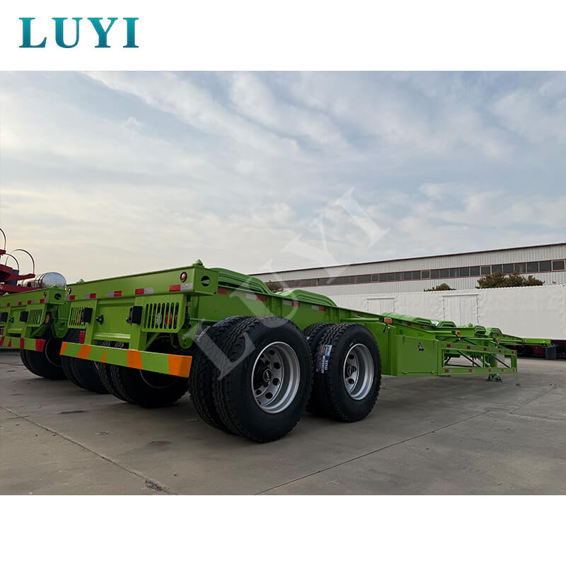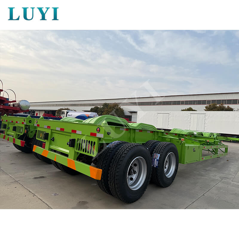 Luyi 2-axlad lastbärande containerskelettsemitrailer, med ursprung från Shandongprovinsen, Kina, är en effektiv transportutrustning speciellt designad för lastbilar, med sin kärnfunktion fokuserad på säker överföring av containrar.