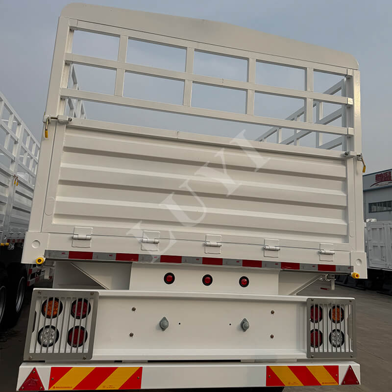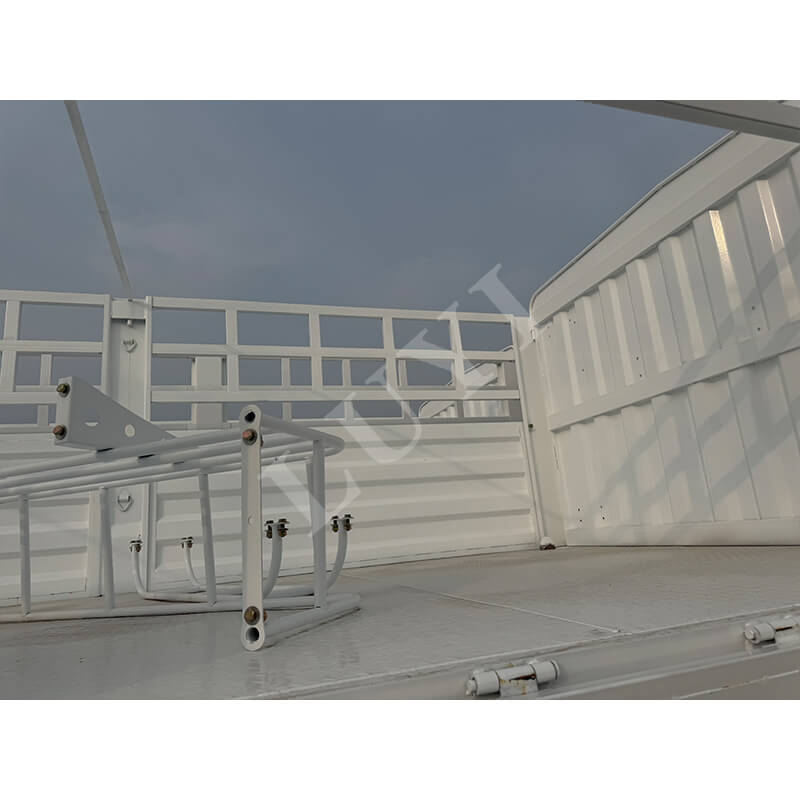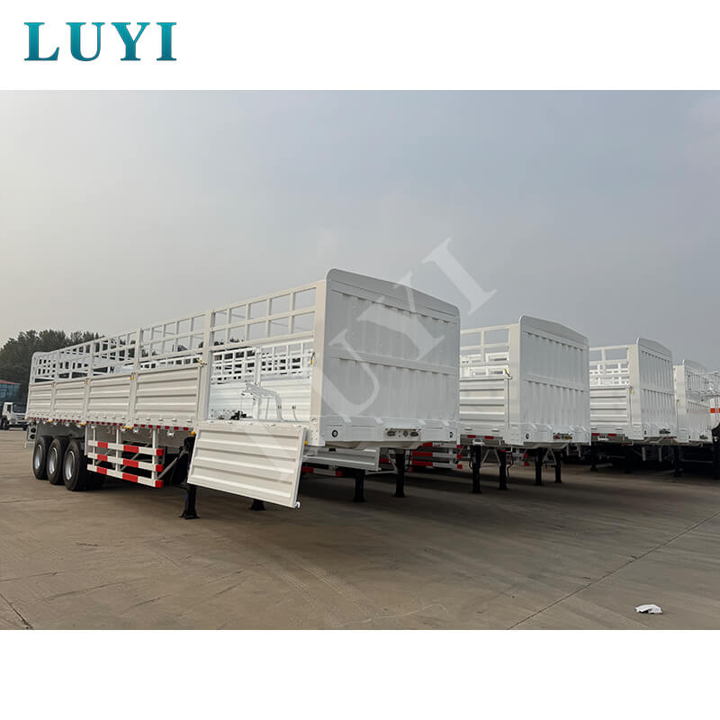 Luyi Vehicles 这款仓栅式半挂车 kommer från Shandongprovinsen, Kina. Med en extremt stor effektiv nyttolast på 80 ton som sin främsta fördel är den speciellt designad för tunga lasttransporter. Måtten 12500×2500×1200 mm, i kombination med 1,5-meters sideboards, säkerställer inte bara lastkapacitet utan håller även fast gods, vilket gör den lämplig för olika fraktscenarier.