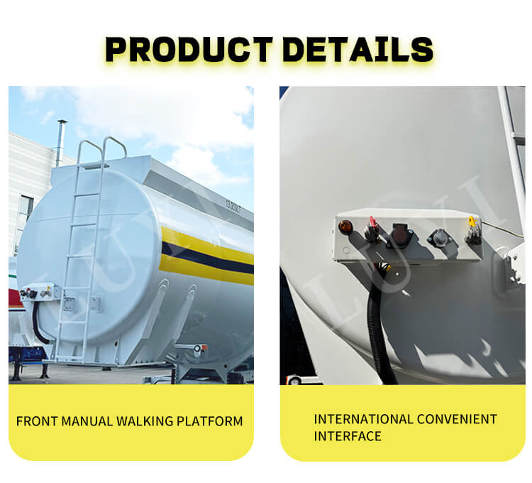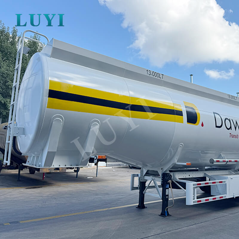 Släpvagnen har solida och pålitliga konfigurationer. Den är utrustad med 13/16-tons axlar från märken som Fuwa, BPW eller BERKLEY, och erbjuder mekanisk eller luftfjädring som tillval. Den är kompatibel med olika däckspecifikationer inklusive 11.00r20, 12r22.5, 315 och 385, vilket säkerställer stabil körning och anpassningsförmåga till olika vägförhållanden. Den levereras med standard 28-tons landningsställ och 50#/90# kungstift för bekväm och säker användning. Produkten stöder anpassade karossfärger och kombinerar funktionalitet och personalisering för att tillhandahålla en stabil och flexibel professionell lösning för dieseltransporter.