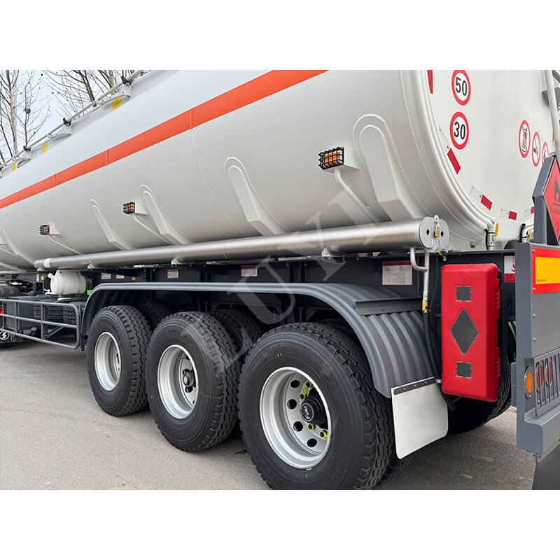 Med dimensioner på 12500×2500×3600 mm är tankkroppen huvudsakligen gjord av stål, och kan även kopplas ihop med kolstål eller aluminiumlegeringsmaterial efter behov. De 3 axlarna är noggrant utvalda från välkända märken inklusive CIMC Dongyue, FUWA och BPW, och matchas med mekanisk fjädring för att säkerställa körstabilitet. Nyckelkomponenter är välutrustade: 28-tons JOST standardstödben ger stabilt stöd; kingpin har valfria JOST-modeller på 2 tum (50 mm) eller 3,5 tum (90 mm); däck erbjuder tre specifikationer såsom 12R22.5; 90×13×10-lagers bladfjädrar förbättrar lastbärande prestanda. Dessutom kan färgen anpassas efter kundens behov, anpassad till olika transportscenarier.