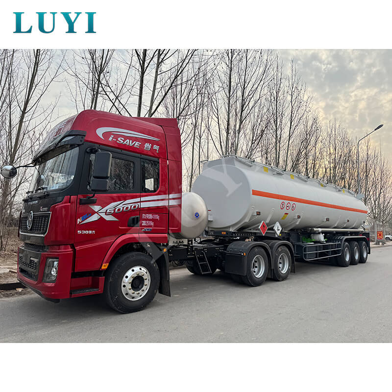 LUYI 3-axliga 30 000-liters ståloljetank semitrailer, som kommer från Shandong-provinsen, Kina, är ett utmärkt val inom bränsletransportområdet. Den kan effektivt transportera media som diesel, bensin, petroleum och råolja, med en maximal effektiv last på 60 ton för att möta transportbehov av stora volymer.