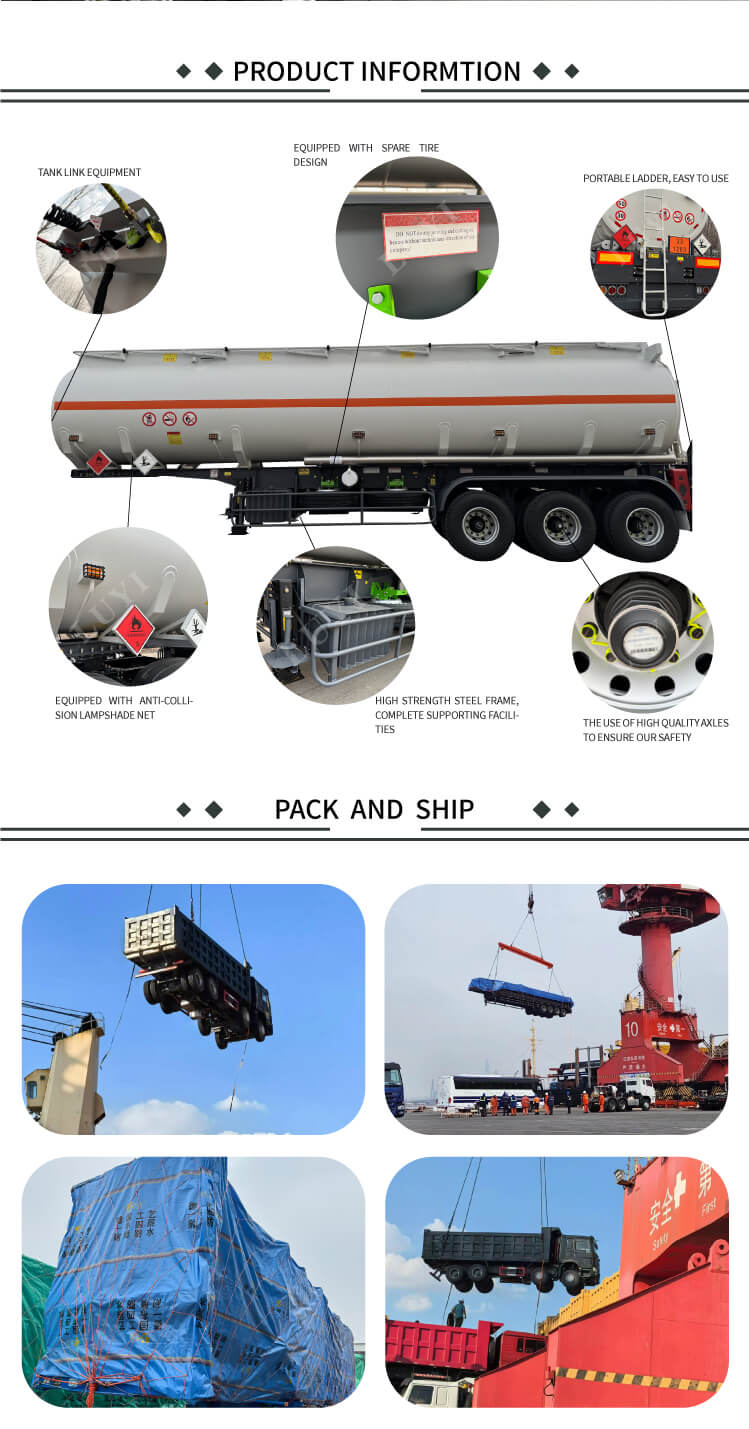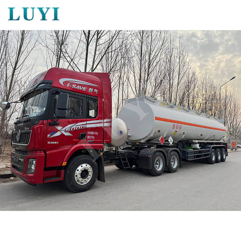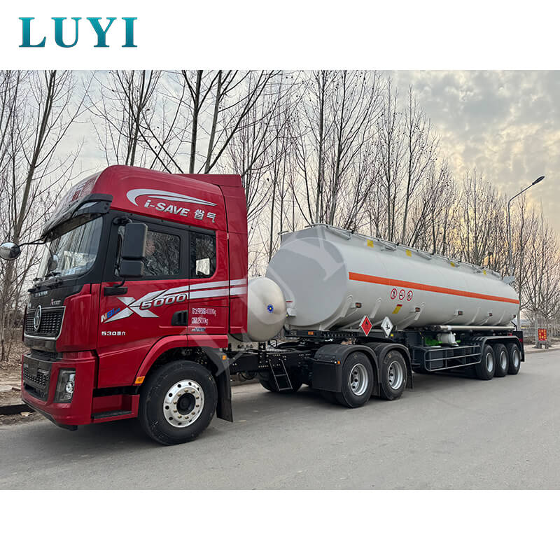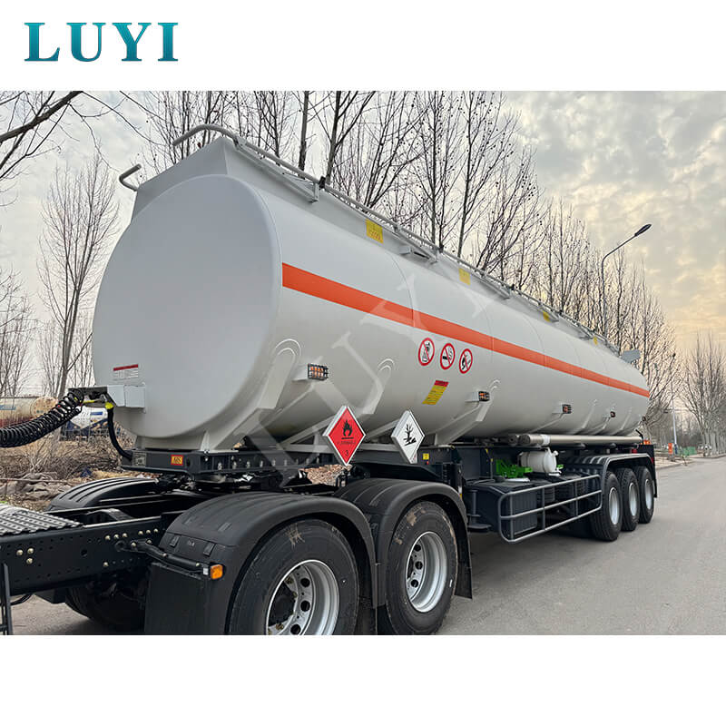 Luyi 3-axliga 30 000-liters semitrailer för livsmedelsklassad oljetank, som kommer från Shandong-provinsen, Kina, är ett pålitligt alternativ för effektiva och säkra semitrailers för lastbilar. Med dimensioner på 12 500 × 2 500 × 3 600 mm är den konstruerad av kolstål eller aluminiummaterial, som kombinerar robusthet och lätta fördelar, och har en maximal effektiv nyttolast på 60 ton, vilket möjliggör stabil transport av media som diesel, bensin, petroleum och råolja.
