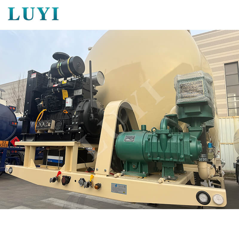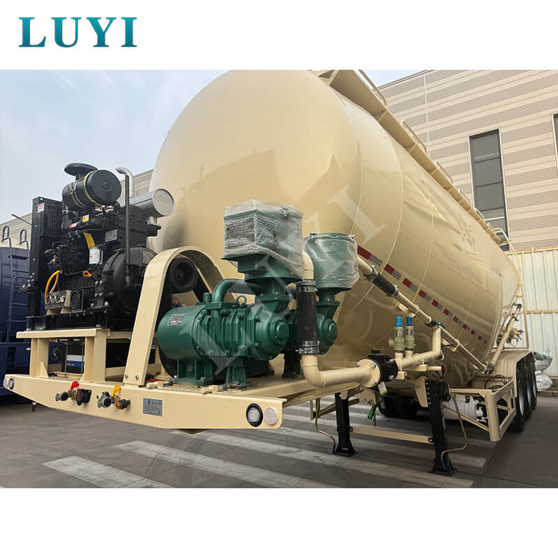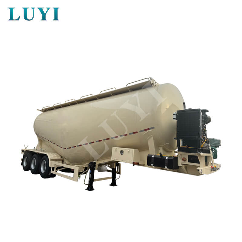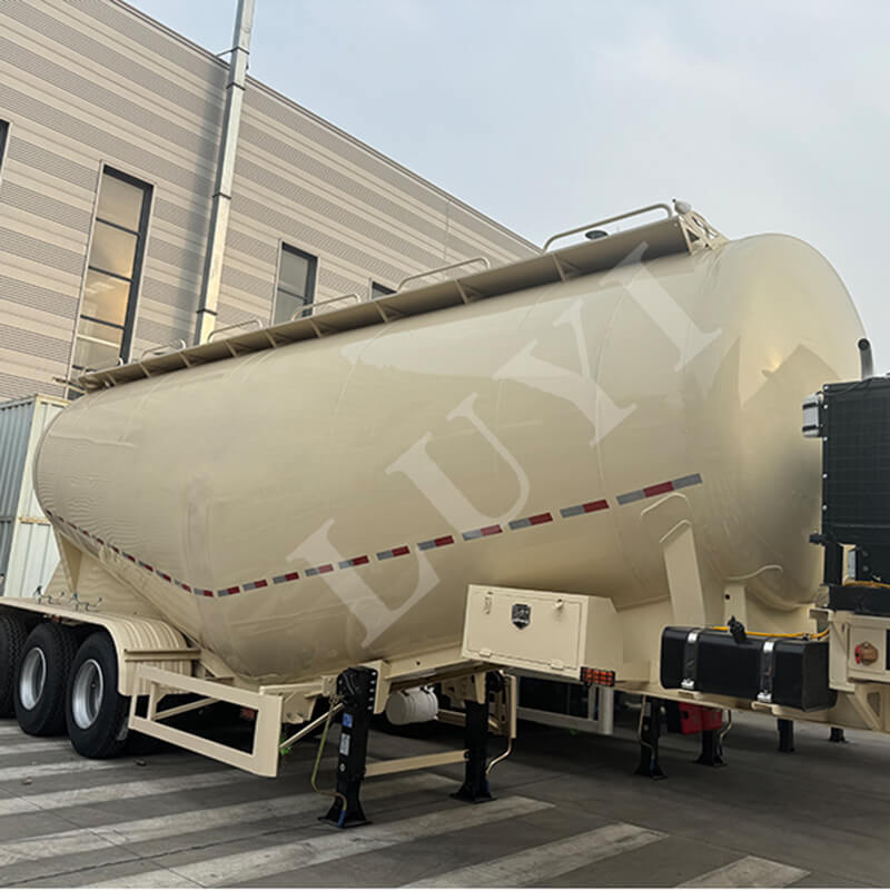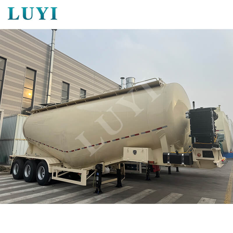 LUYI 3-axlade 35-50 kubikmeter cementtank semitrailer, som kommer från Shandong-provinsen, Kina, är en högkvalitativ semitrailer speciellt designad för effektiv cementtransport. Den har en maximal effektiv lastkapacitet på 70 ton och en volym som sträcker sig från 35 till 50 kubikmeter, flexibelt anpassad till transportbehov av olika skalor.
