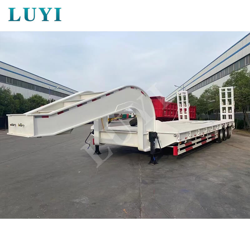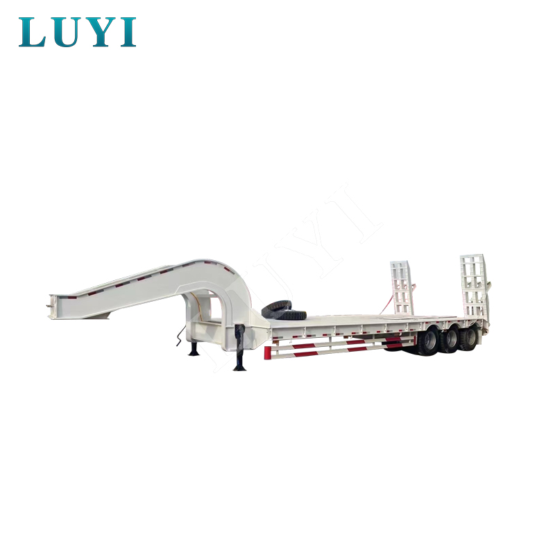 LUYI 3-axlad 40-tons lågbäddssläp, ett högpresterande tunga transportfordon från Shandong, Kina, utmärker sig med sin maximala lastkapacitet på 120 ton, och hanterar lätt transportbehov av tung utrustning.