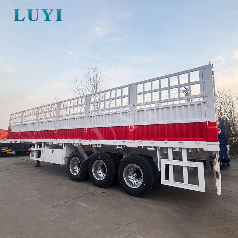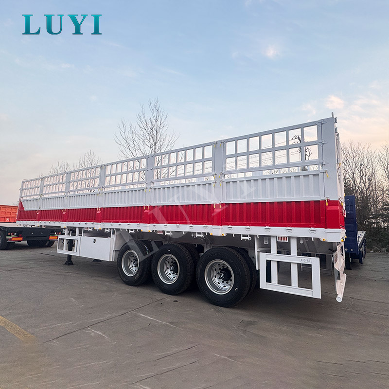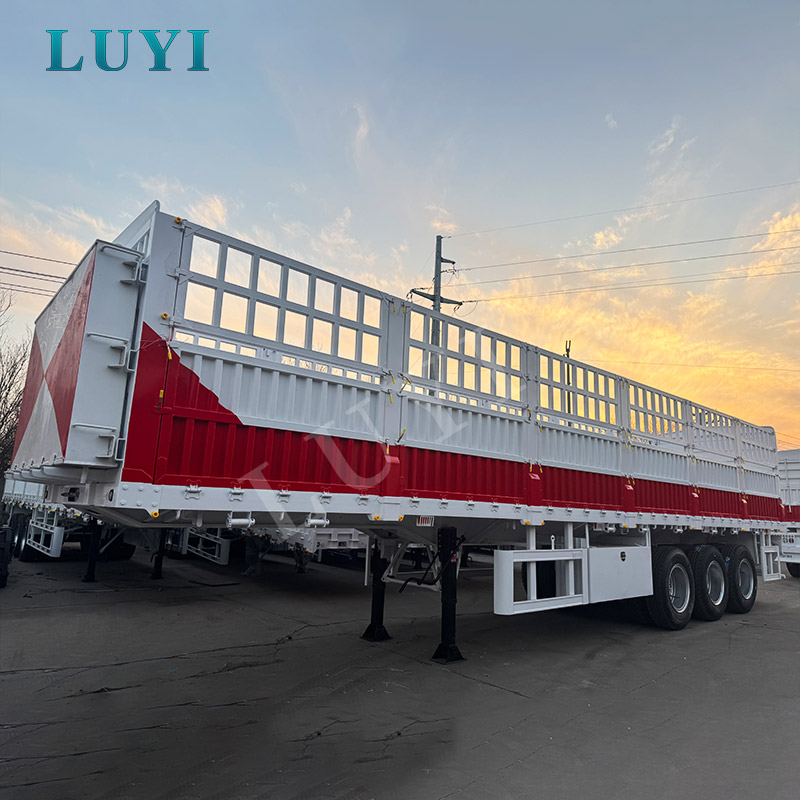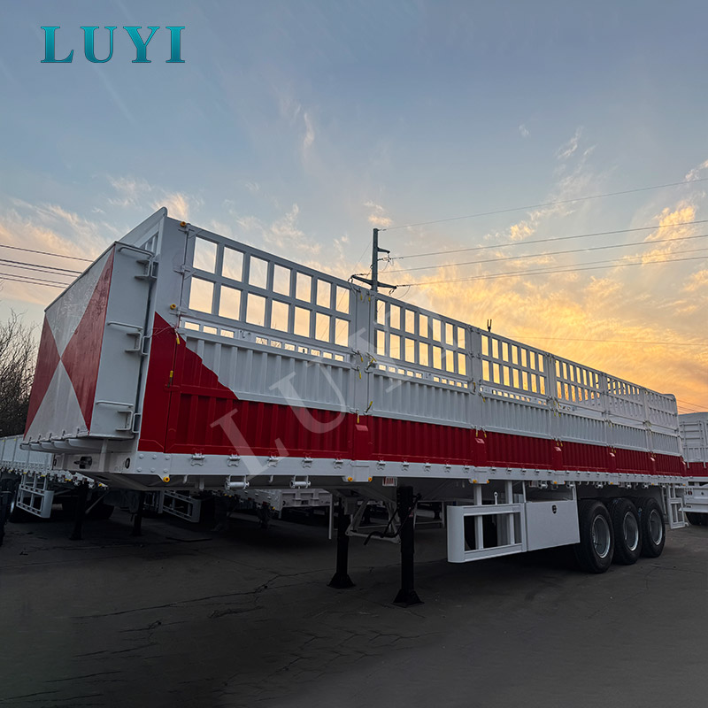 LUYI 3-axlig sidovägg semitrailer är en tung transportarbetshäst byggd för bulklastbehov, tillgänglig i 50T, 60T och 80T lastkapacitet. Den mäter 1550025504000 mm, har en robust stålkropp och kommer med två fjädringsalternativ: mekanisk fjädring för kostnadseffektiv hållbarhet och luftfjädring för mjukare körningar på ojämna vägar. Utrustad med 12 st 12r22.5-däck och top-tier axlar från Feichi, BPW eller Fuwa, säkerställer den stabil prestanda även under maximal belastning.
