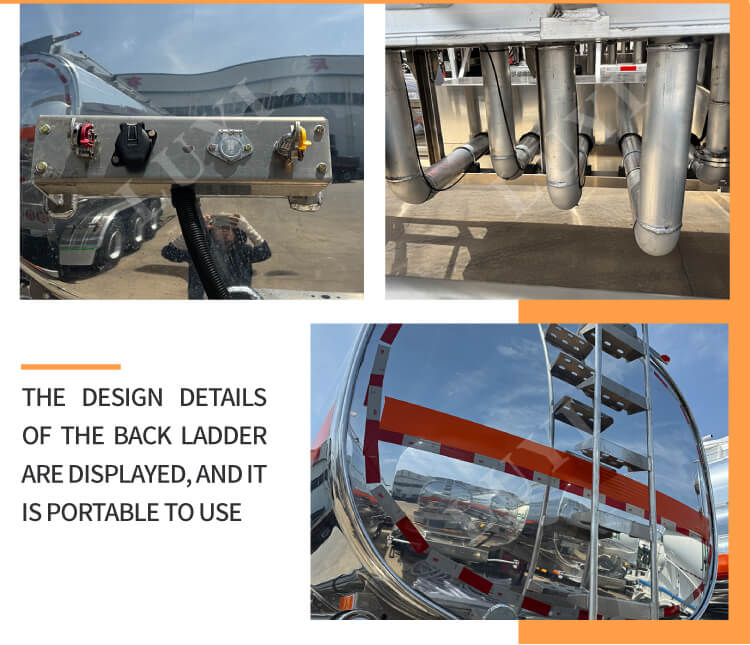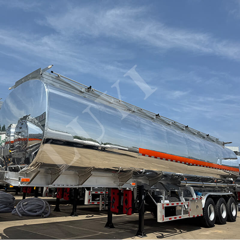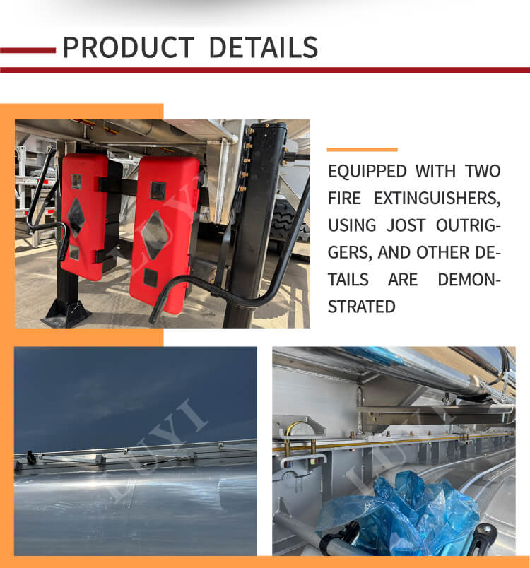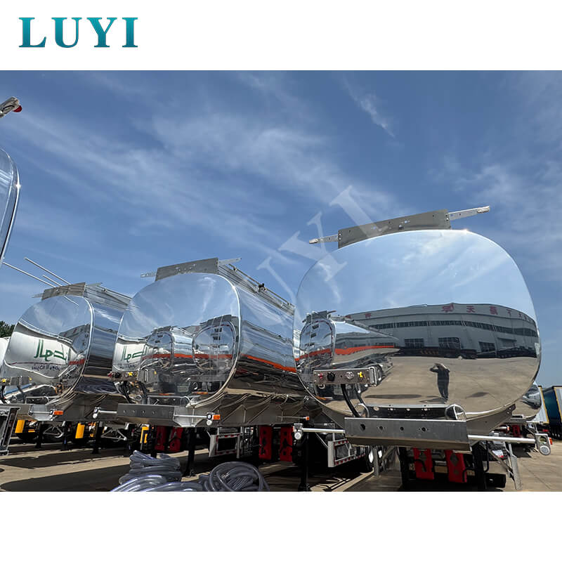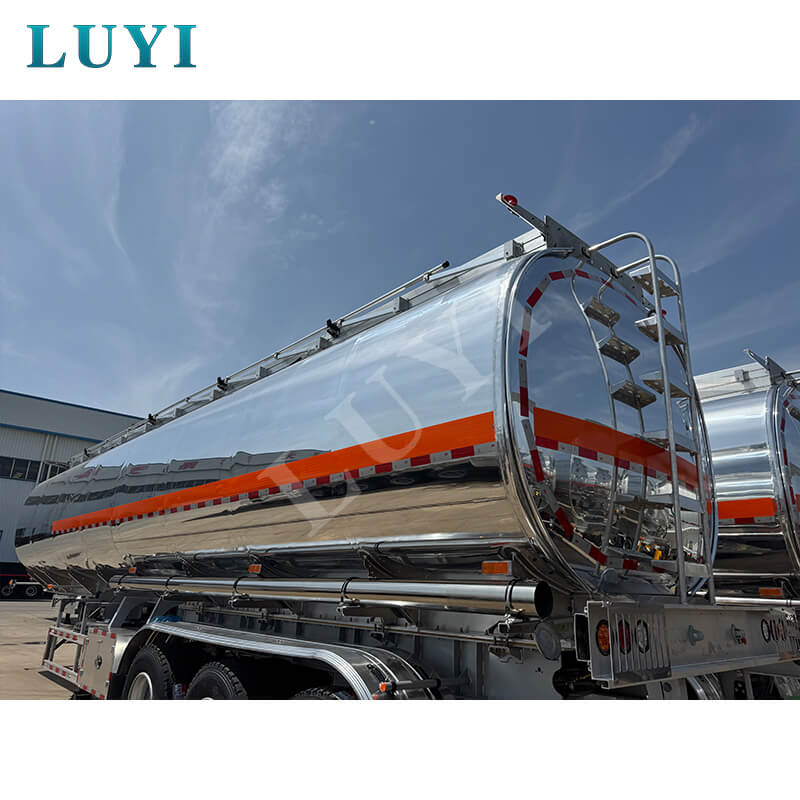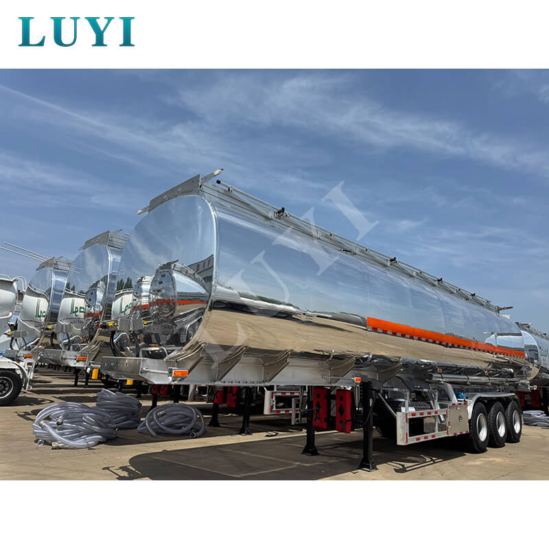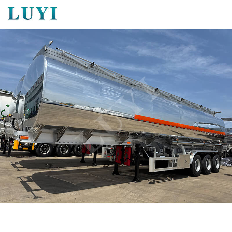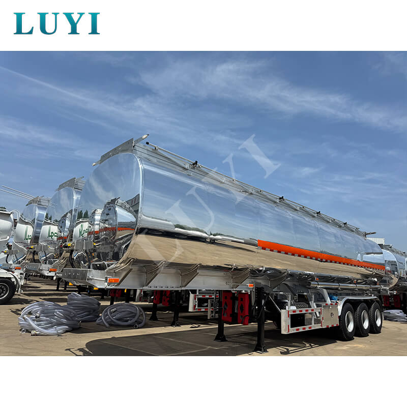 LUYI 3-axliga 45 000 L 5-tankar i aluminiumlegering oljetank Semi-trailer, som kommer från Shandong-provinsen, Kina, är en högeffektiv och säker utrustning för oljetransport. Den har dimensioner på 12 500×2 500×3 600 mm och en maximal effektiv lastkapacitet på 60 ton, kapabel att flexibelt transportera media som diesel, bensin, petroleum och råolja.