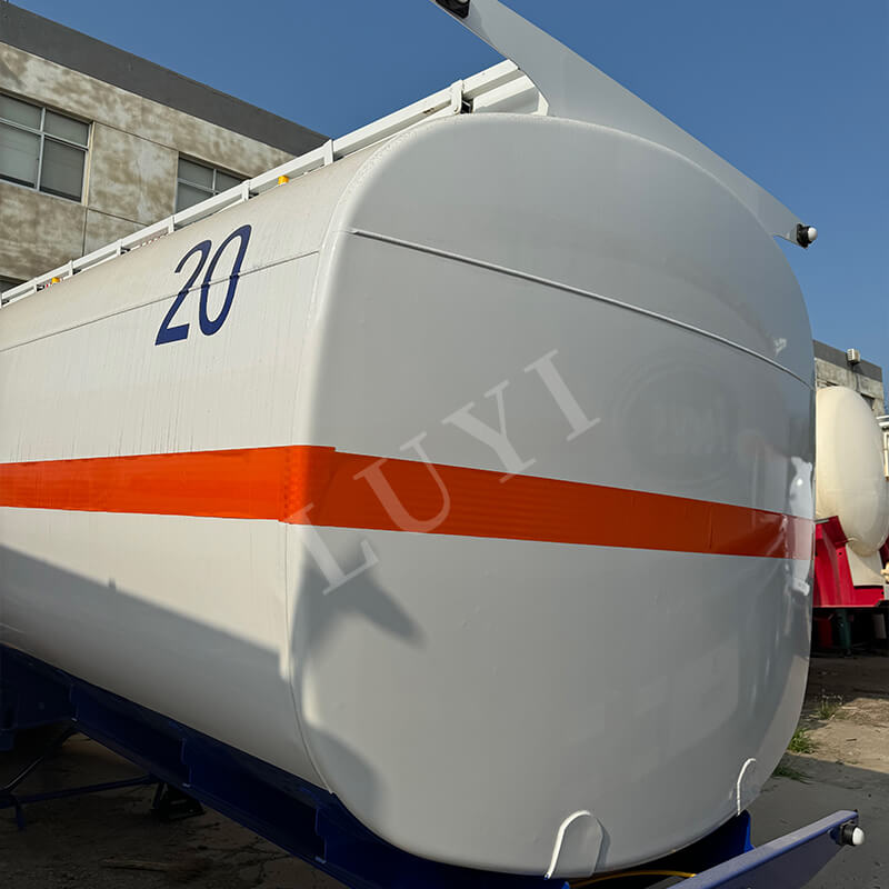 Luyi 3-axlad 45 000-liters semitrailer för 5-facks oljetankar är en ny, kraftig släpvagn av lådtyp med specifikationer på 12500×2500×3600 mm, en lastkapacitet på 50 ton och är lämplig för transportbehov av vätskor som diesel.
