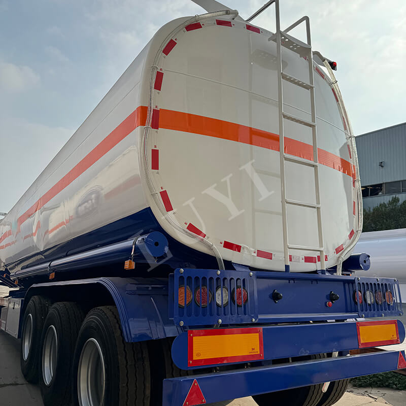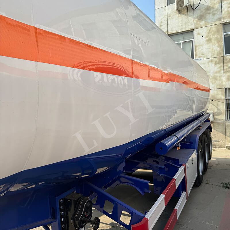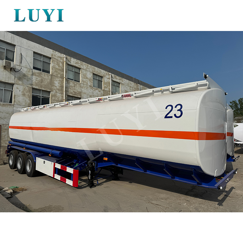 Luyi 3-axlig 45 000-liters semitrailer för 5-facks oljetankar är en ny, kraftig släpvagn av lådtyp med specifikationer på 12500×2500×3600 mm, en lastkapacitet på 50 ton, lämplig för transport av diesel och andra vätskor.