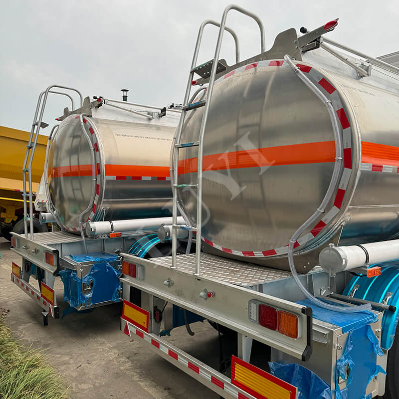 Fordonet har en stabil 3-axlig layout, matchad med 13-tons Fuhua / BPW-märkta axlar, med valfri mekanisk eller luftfjädring, lämplig för flera vägförhållanden som motorvägar och provinsvägar. Den är utrustad med en förseglad tankstruktur och anti-läckageventiler för att undvika risken för dropp och läckage under oljetransport. Samtidigt är den utrustad med ett ABS-låsningsfritt bromssystem för att säkerställa körsäkerheten under tunga belastningsförhållanden. Det nya fordonets skick, kombinerat med hållbarheten hos aluminiumlegeringstanken, kan långsiktigt möta de högfrekventa transportbehoven för färdiga oljor, vilket ger en effektiv, säker och lågförlusttransportlösning för oljelogistikföretag.