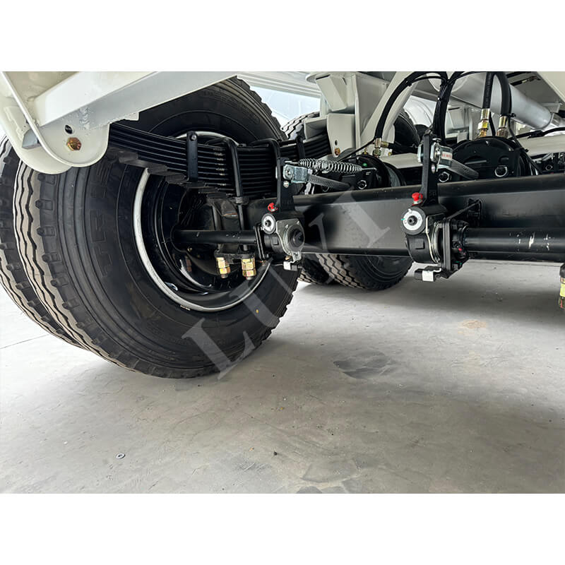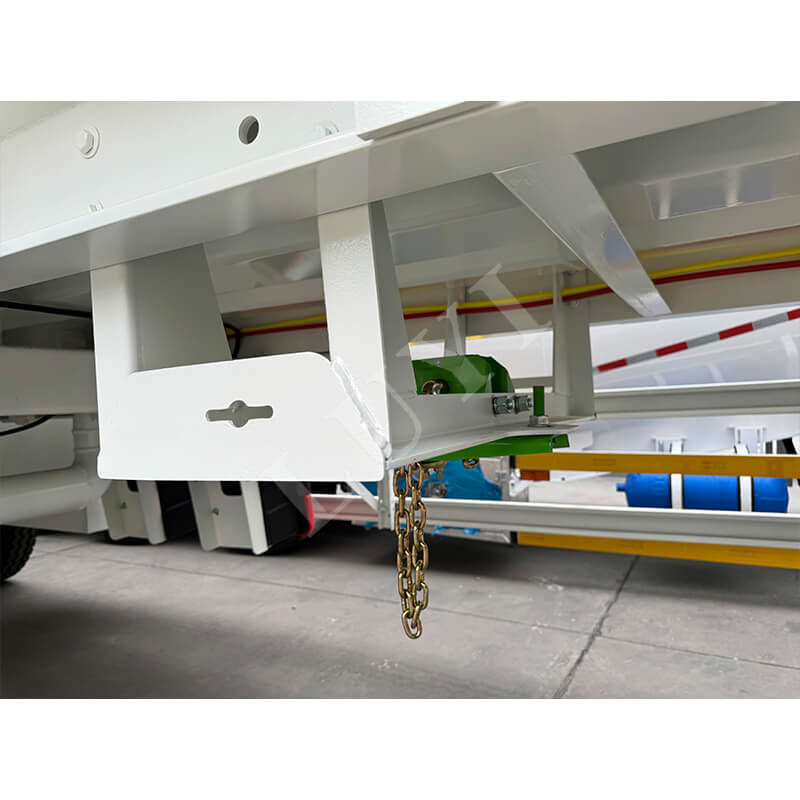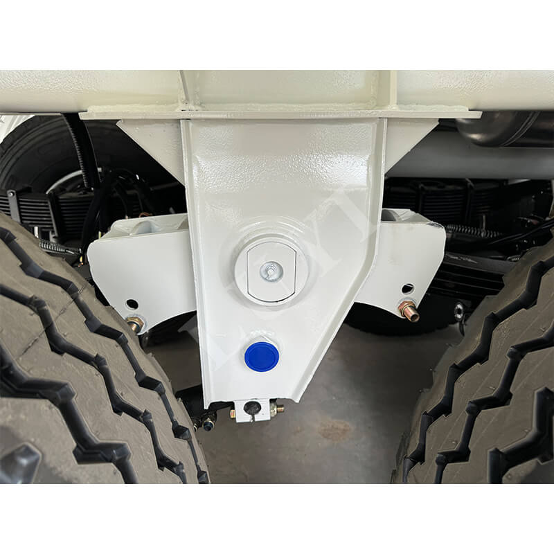 Fordonets dimensioner är 14000×2500×40000 mm, med en tankvolym på 50 000 liter, och den maximala effektiva lasten matchar detta, vilket kan möta transportbehoven av stora mängder flytande gods. Två alternativ för mekanisk fjädring och luftfjädring finns tillgängliga, tillsammans med 12R22.5-däck och 9.00-22.5 fälgar, vilket säkerställer körstabilitet och säkerhet. Standardstöden på 28 ton ger stabilt stöd när fordonet är parkerat.