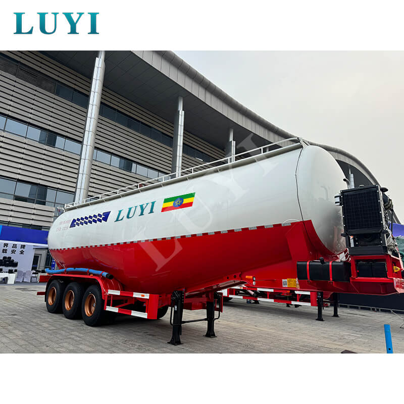 Med sitt ursprung från Shandong-provinsen, Kina, är Luyi Vehicles 3-axlig 57-kubikmeter pulvertank semitrailer en högkvalitativ stålutrustning speciellt utformad för speciell vätsketransport. Den är lämplig för bogsering av lastbilar och uppfyller transportbehoven för olika flytande material. Med dimensioner på 14000×2500×4000 mm är tankvolymen 50 000 liter och den maximala effektiva nyttolasten kan nå 57 000 liter, vilket ger stark lagrings- och transportkapacitet.