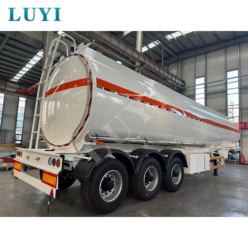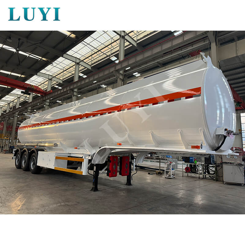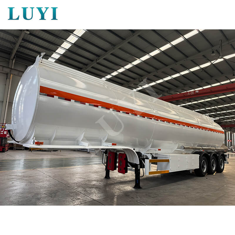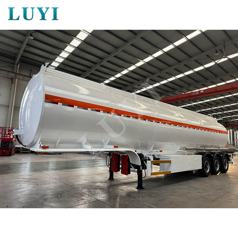 Luyi 3-axliga 60-tons 45 000-liters kolståloljetank semitrailer, ursprungligen från Shandong-provinsen, Kina, är en professionell semitrailer för bränsletransport. Med en maximal effektiv last på 60 ton och en stor kapacitet på 45 000 liter kan den effektivt tillgodose bränsletransportbehov.