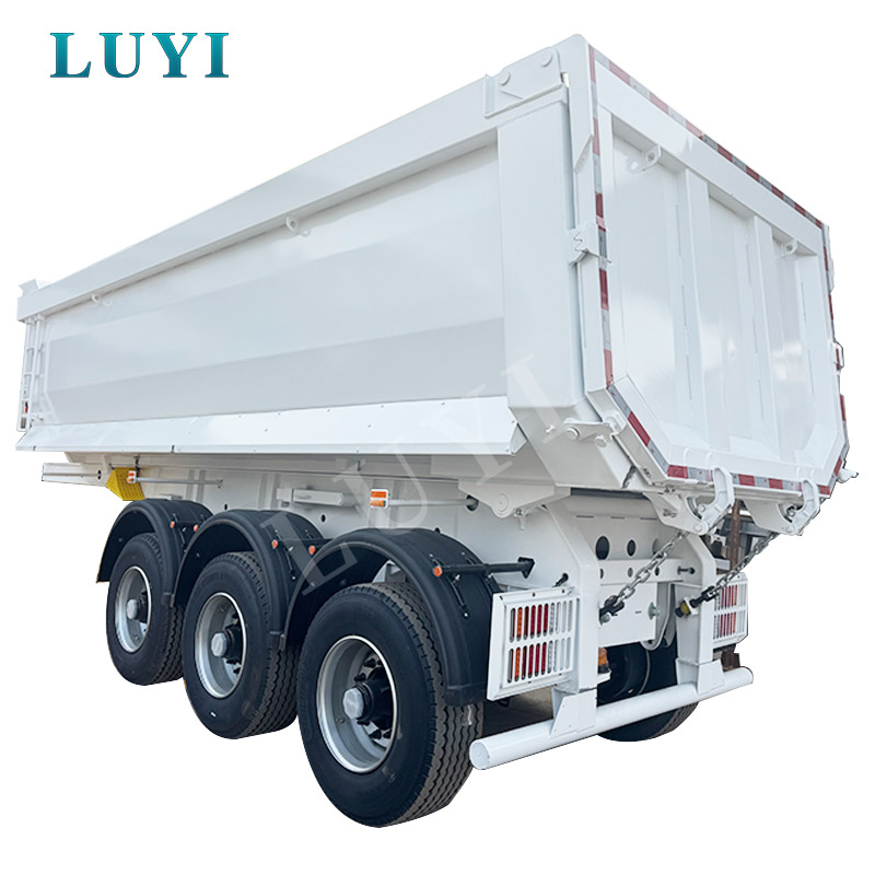 Den LUYI treaxlade U-formade hydrauliskt justerbara semitrailer med baktipp är en effektiv transportutrustning speciellt utformad för transport av material som sand, grus och spannmål. Det kommer från högkvalitativ tillverkning i Shandong, Kina.