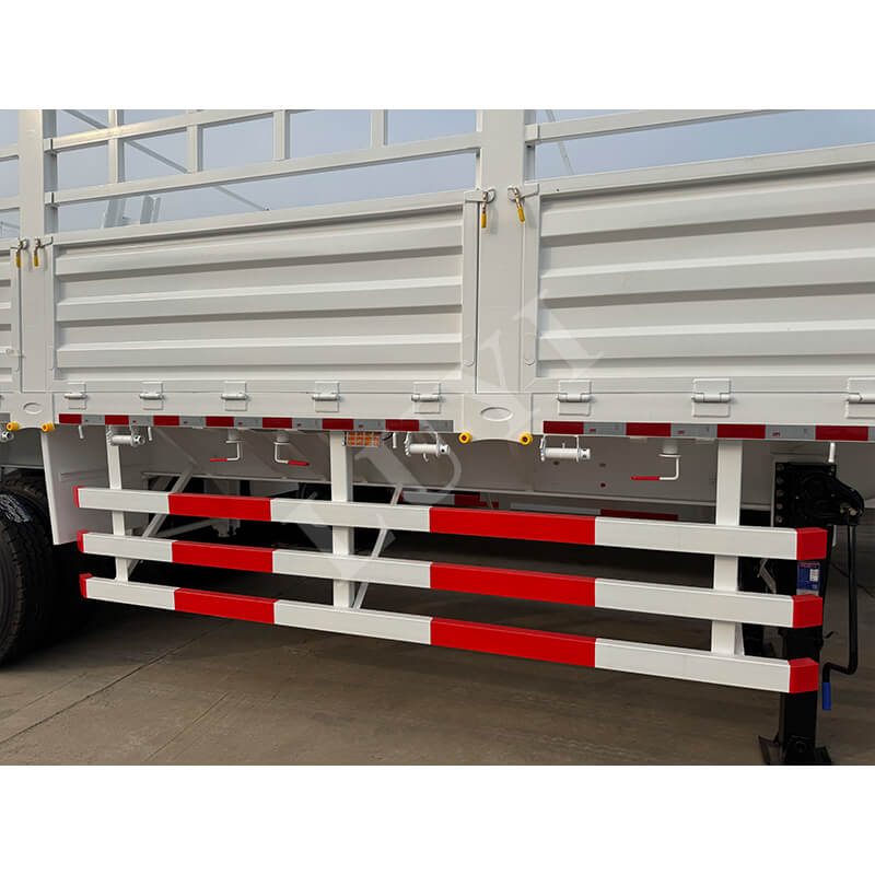 Släpvagnen är huvudsakligen tillverkad av högkvalitativt stål och har en solid och hållbar struktur. Dess maximala effektiva last når 100 ton, och den vanliga lastkapaciteten sträcker sig från 80 till 100 ton. Med dimensioner på 1250025002000 mm är den utrustad med 3 axlar av FUWA- eller BPW-märken, och du kan flexibelt välja mekanisk fjädring eller luftfjädring för att anpassa dig till olika väglag. Kingpin erbjuder 2-tums (50 mm) eller 3,5-tums (90 mm) JOST-alternativ, stödbenen är av standard 28-tons specifikation, och däcken kan vara 12R22.5, 12.00R20 eller 11R22.5 modeller. Den har omfattande funktioner, som kan transportera djur, allmängods och containrar, och dess färg kan också anpassas efter behov, vilket ger en pålitlig lösning för olika fraktscenarier.