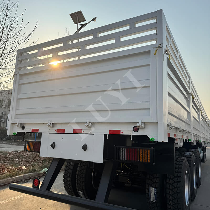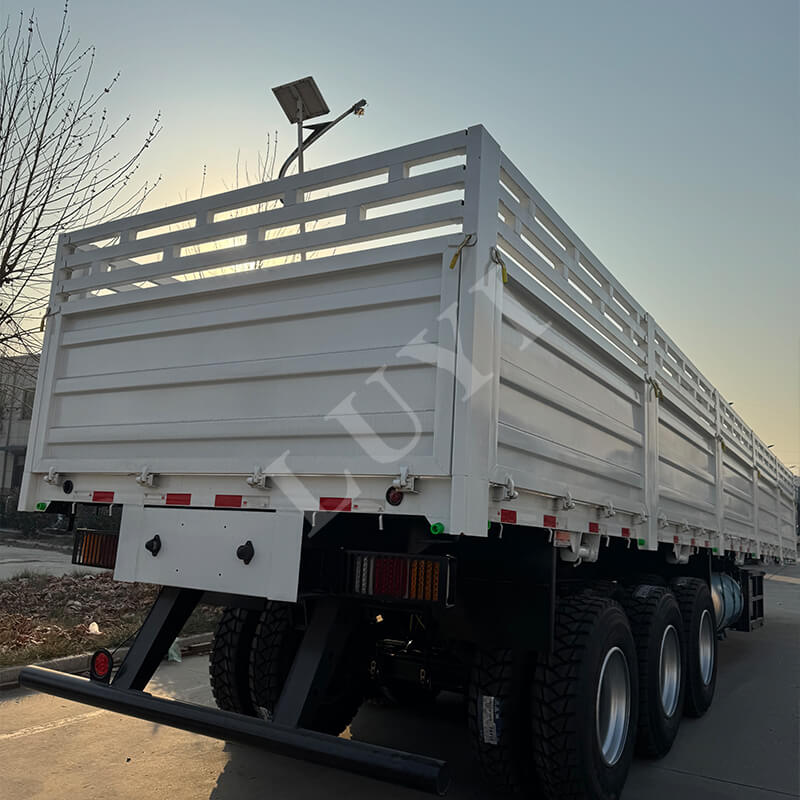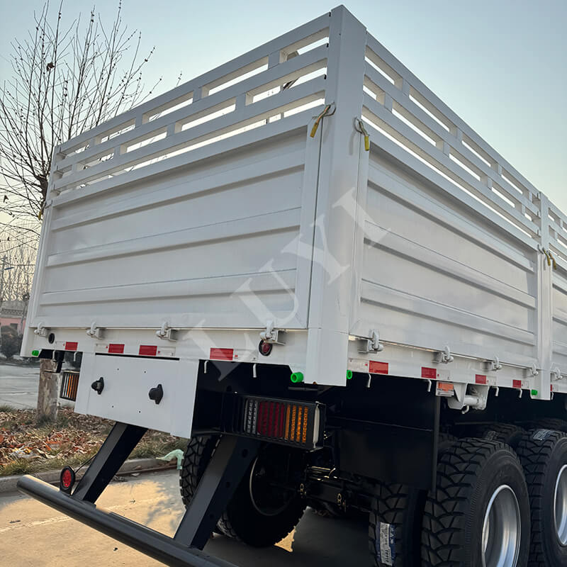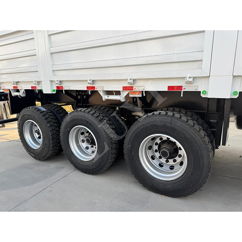 Fordonet är huvudsakligen tillverkat av stål, i ett helt nytt skick, med pålitlig kvalitet. Utrustad med en 3-axlig design, kombinerat med ett bladfjäderupphängningssystem, och valfri mekanisk fjädring eller luftfjädring, säkerställer den stabilitet och bärförmåga under körning, med en lastkapacitet på upp till 30 ton. Specifikationen på 12500x2500x2100 mm ger tillräckligt med lastutrymme, som inte bara kan hantera transport av bulkgods utan också anpassas till transport av containrar, med ett brett utbud av applikationsscenarier. Dess unika självlossningsfunktion förbättrar avsevärt effektiviteten vid lastning och lossning av varor, vilket minskar arbetskostnaderna och lastnings-/lossningstiden. Oavsett om det gäller transport av byggmaterial eller distribution av industriella färdiga produkter, kan Luyi 3-axliga sidoväggs semitrailer för transport av varor lita på dess utmärkta prestanda och pålitliga kvalitet för att bli en kompetent assistent inom logistiktransport.