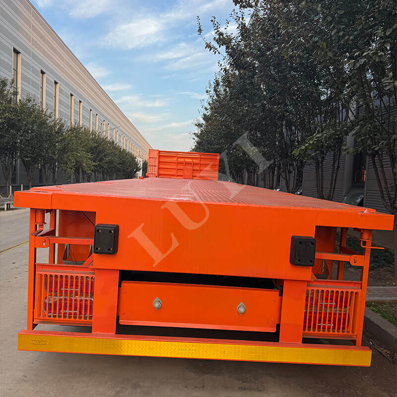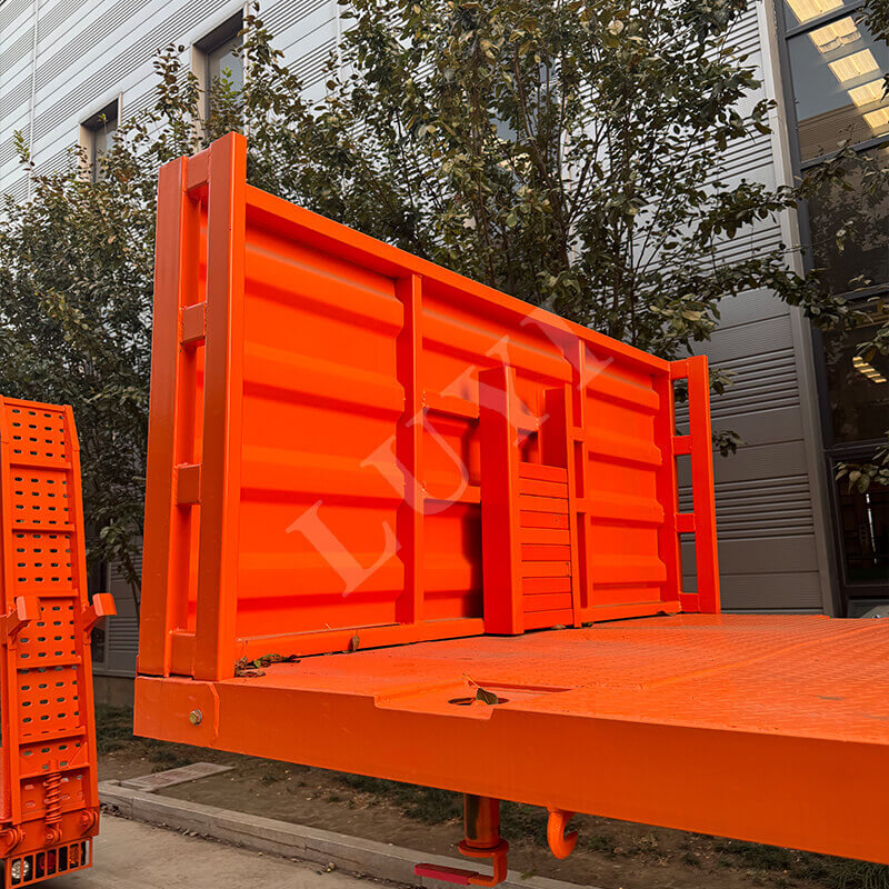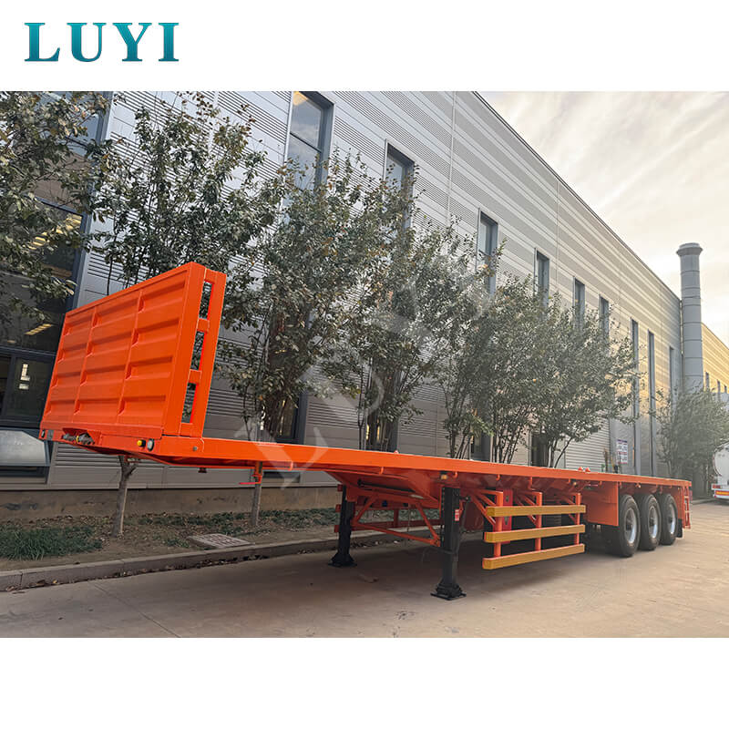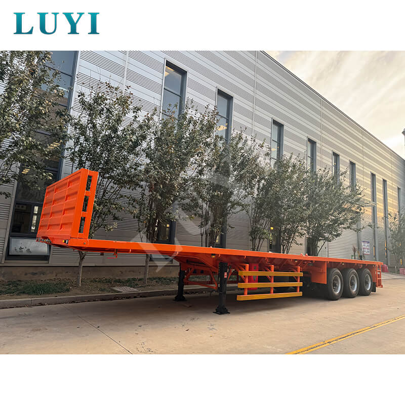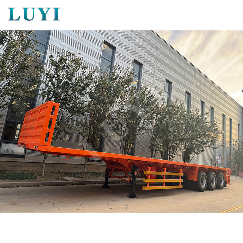 Luyi 3-axlig 60-tons tung last specialdesignad semitrailer med flak, med ursprung från Shandong, Kina, är ett kraftfullt verktyg för containertransport som kombinerar styrka och flexibilitet. Dess maximala effektiva nyttolast når 60 ton, främst med fokus på 40-fots containertransport. Axlarna kan valfritt konfigureras med 2/3/4 axlar, stödda av två välkända märkesaxlar, Fuwa och BPW, vilket säkerställer stabil och pålitlig transport av tung last.