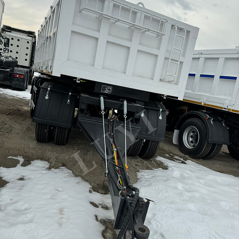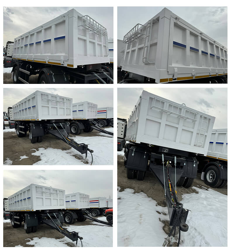 Släpvagnskroppen är tillverkad av högkvalitativt stål, med en robust och hållbar struktur som lätt tål komplexa vägförhållanden och tungt lasttryck under koltransport. Den erbjuder flera axelkonfigurationer: 13T, 14T, 16T och 18T. Matchad med däck med olika specifikationer som 11.00r20, 12r22.5, 315 och 385, sträcker sig dess maximala effektiva nyttolast från 20 till 50 ton, vilket uppfyller tonnagekraven för olika kolgruvtransporter.