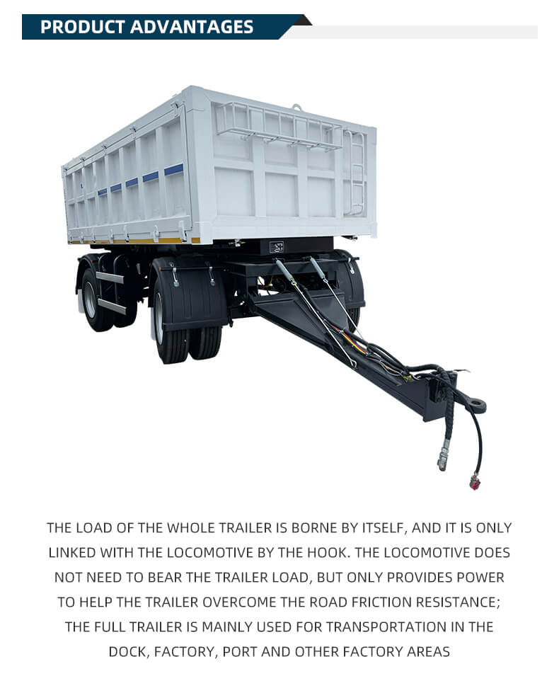 Denna produkt är en 3-axlig dumper semitrailer med full släp, speciellt designad för transportscenarier för kolgruvor, med centrala fördelar med höghållfast lastbärande och flexibel anpassningsförmåga.