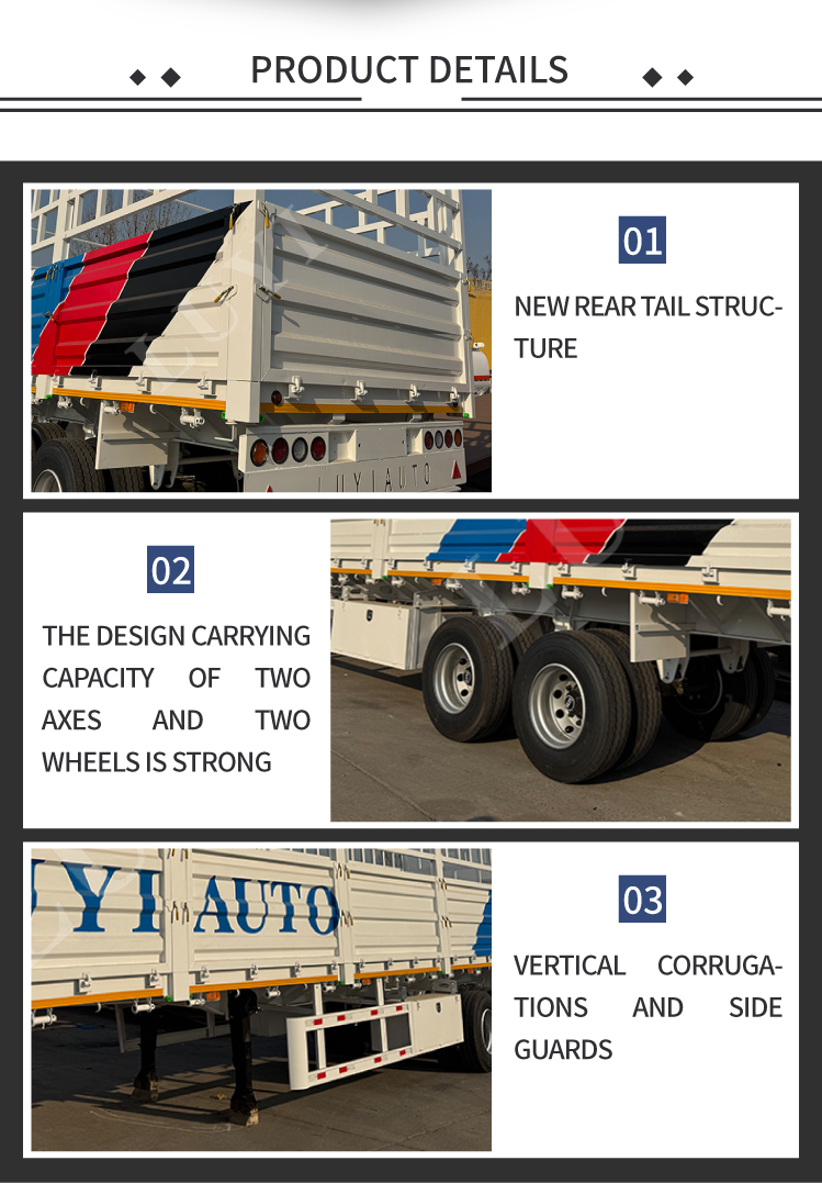 LUYI:s nydesignade 2-axliga semitrailer med hög stängsel med sidovägg erbjuder dubbla lastkapaciteter på 30 och 60 ton, perfekt tillgodoser medel- och tunga fraktbehov som byggmaterial, industriell utrustning och jordbruksprodukter. Den höga stängselstrukturen förh......