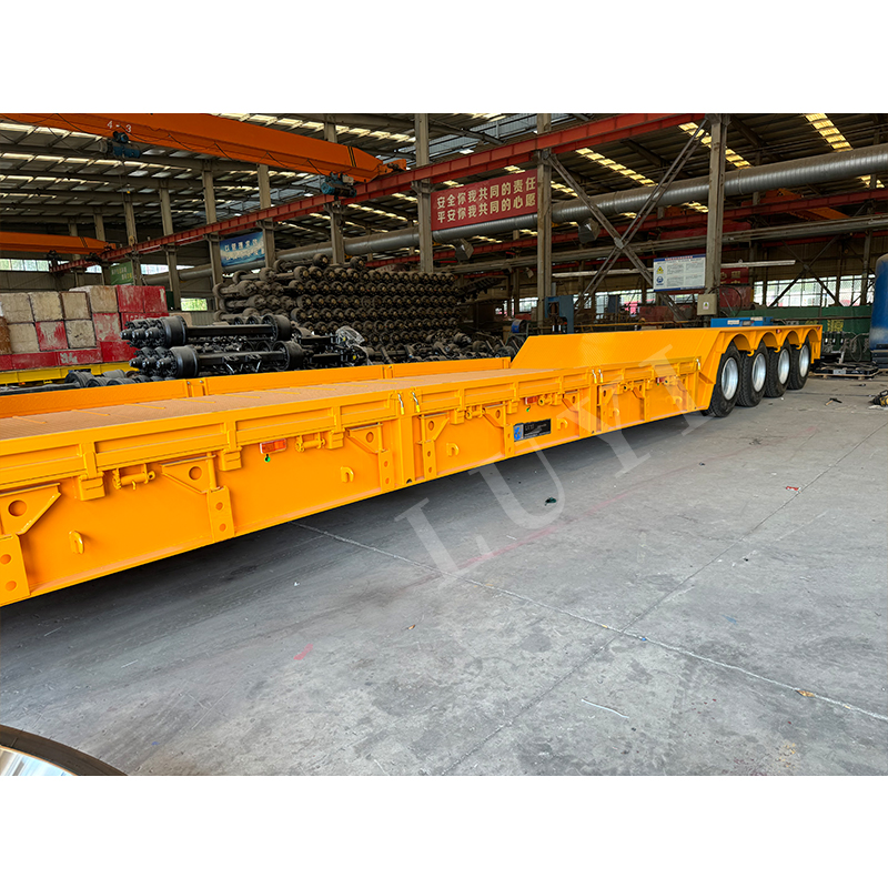 Släpvagnen erbjuder mekanisk eller luftfjädring som tillval, tillsammans med 90 (bredd) ×13 (tjocklek) ×10 (lager) bladfjädrar och valfria 12R22.5/12.00R20/11R22.5 däck, vilket säkerställer stabila och pålitliga däck.duglig transport. Den är även utrustad med JOST standard 28 tons stödben för stark stabilitet. Varumärket Luyi bygger produktkvalitet med gedigna material och utsökt hantverk, vilket ger en säker och effektiv lösning för långväga transporter av tung utrustning.