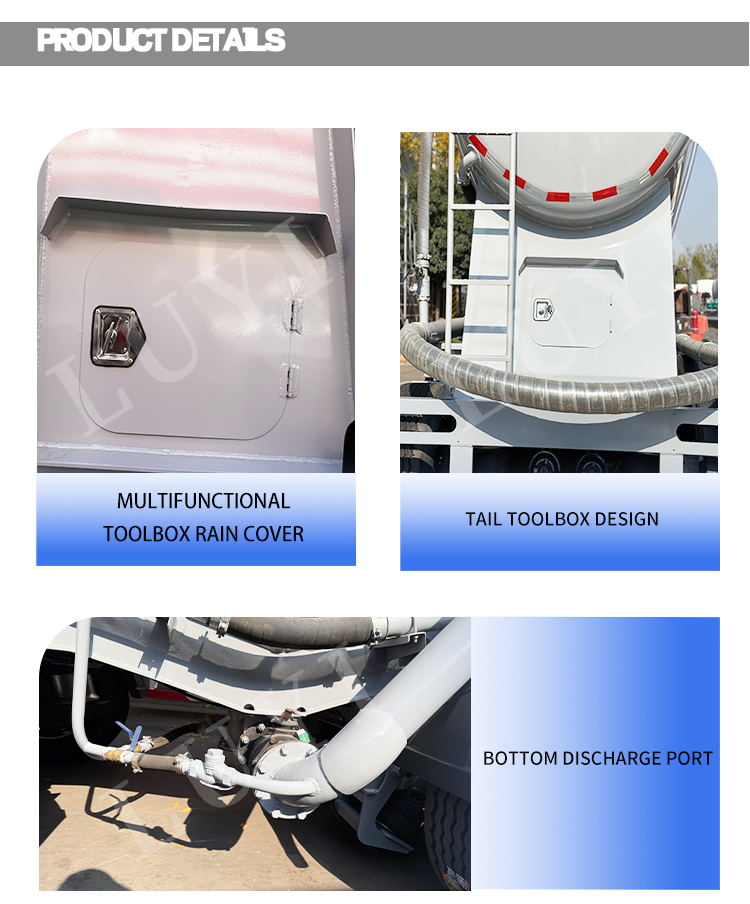 Vi presenterar LUYI 4 Axle 40 kubikmeter pulvertank semitrailer, en högpresterande bulkcementtransportlösning tillverkad i Shandong, Kina. Som en helt ny påhängsvagn dedikerad till bulkcementpulvertransport, har den en robust stålkonstruktion som säkerställer hållbarhet och tillförlitlighet även under tunga förhållanden.