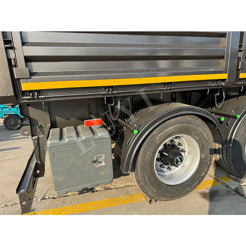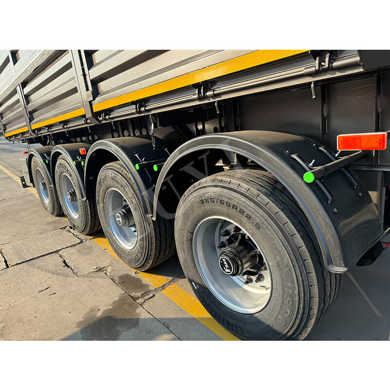 Släpvagnen är tillverkad av högkvalitativt kolstål och har en hållbar struktur med måtten 9500x2500x3600MM. Den har en 4-axlig uppsättning, ihopkopplad med en mekanisk fjädring och 90(W)mm×13(Thickness)mm×10(Layer) bladfjädrar, vilket säkerställer stabil lastbärande även under tuffa förhållanden. Den maximala nyttolasten når 80 ton, medan däckalternativ (12R22.5/12.00R20/11R22.5) och JOST standard 28 tons landställ förbättrar anpassningsförmågan och säkerheten. Färgen kan anpassas efter kundens önskemål, vilket gör den till ett pålitligt, mångsidigt val för bulktransport.