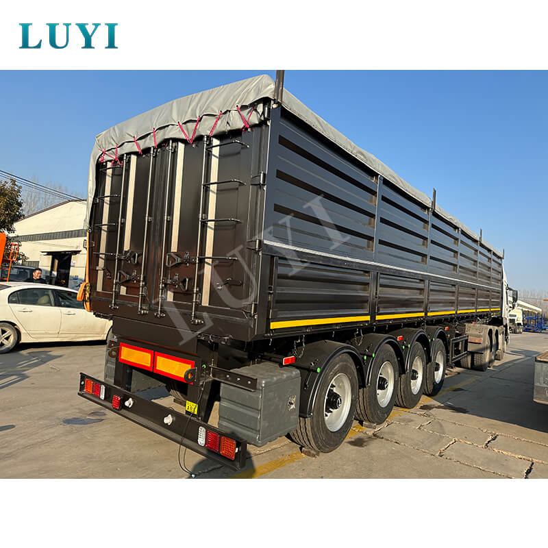 Denna 4-axliga 40-fots dumper semitrailer från märket LUYI är ett högpresterande transportfordon skräddarsytt för sand-, sten- och koltransporter. Den kommer från Shandong i Kina och kombinerar robust konstruktion med praktisk funktionalitet för att möta behov av tunga transporter.