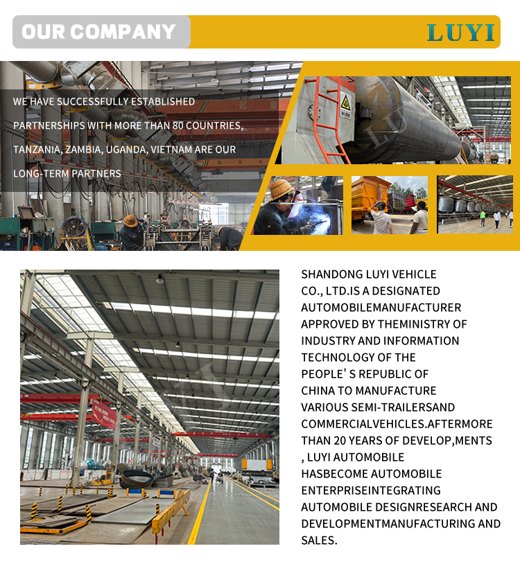 Kroppsfärgen stöder personlig anpassning och uppfyller helt olika kunders varumärkesvisning och användningsbehov. I enlighet med den ursprungliga kvalitetssträvan har LUYI gjort denna 4-axliga bakre dumper semitrailer till en pålitlig partner inom tunga transporter genom mogna tillverkningsprocesser och strikta kvalitetsinspektionsstandarder, vilket ger globala kunder effektiva, säkra och ekonomiska transportlösningar.