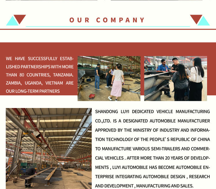 LUYI 4-axlad semitrailer dumper, tillverkad i Shandong, Kina, är speciellt designad för tunga transporter och fungerar som en pålitlig partner för effektiv logistik.