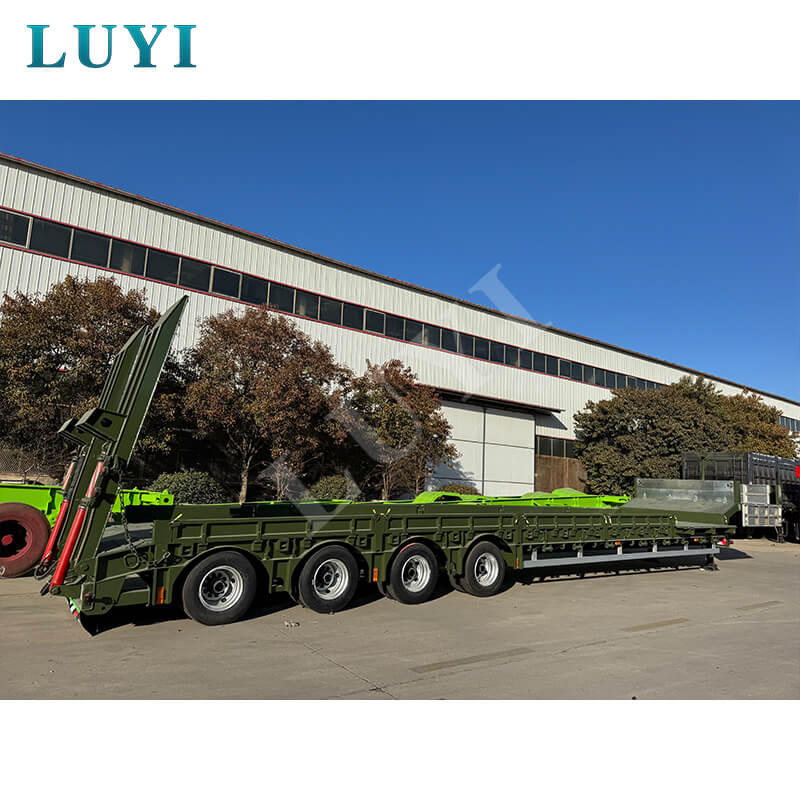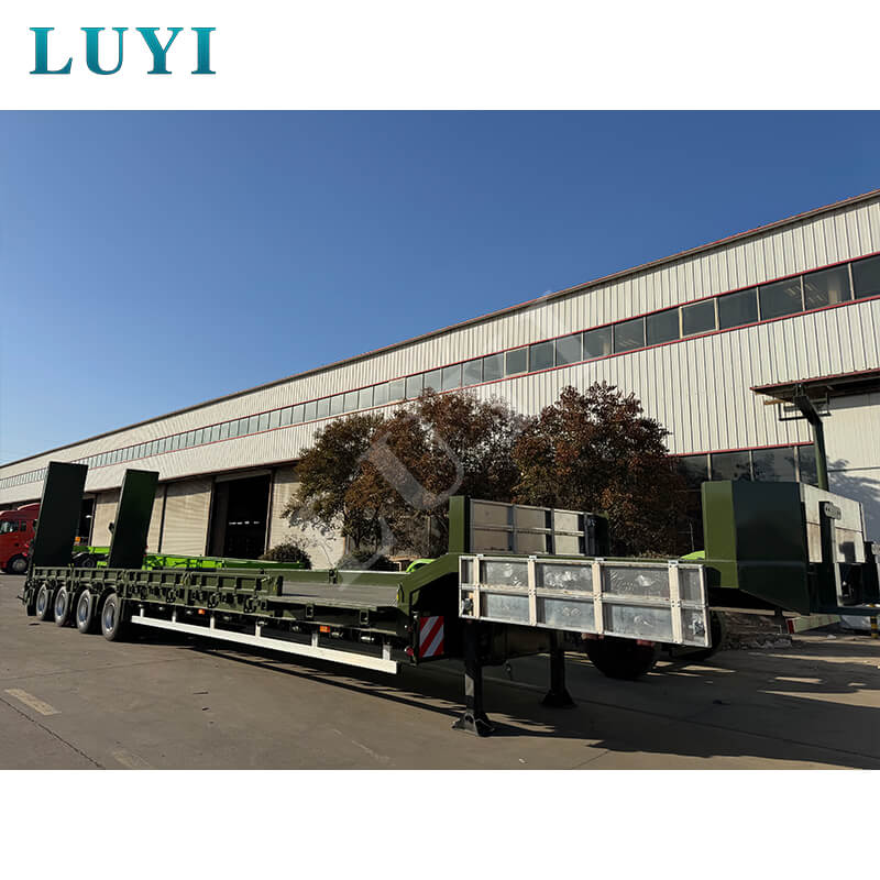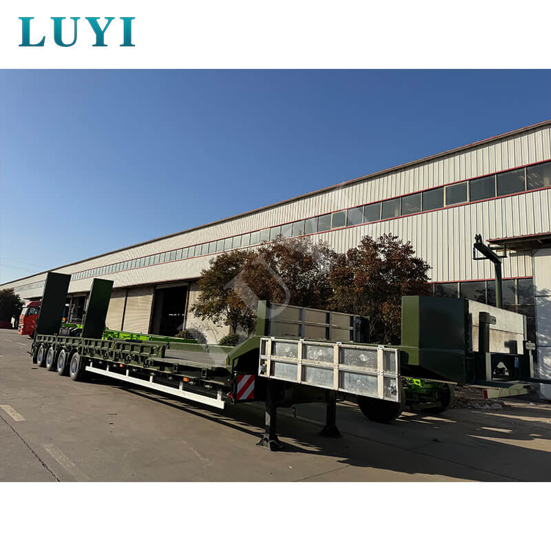 LUYI 4-axlad 60-tons svanhals lågbäddsvagn, en helt ny produkt från Shandong, Kina, är en professionell lastbilssläp som är designad för tung lasttransport. Den använder högkvalitativt stål som huvudmaterial, med en standardstorlek på 13m×3m×2,5m, och en maximal nyttolast på 60 ton för att möta tunga transportbehov.