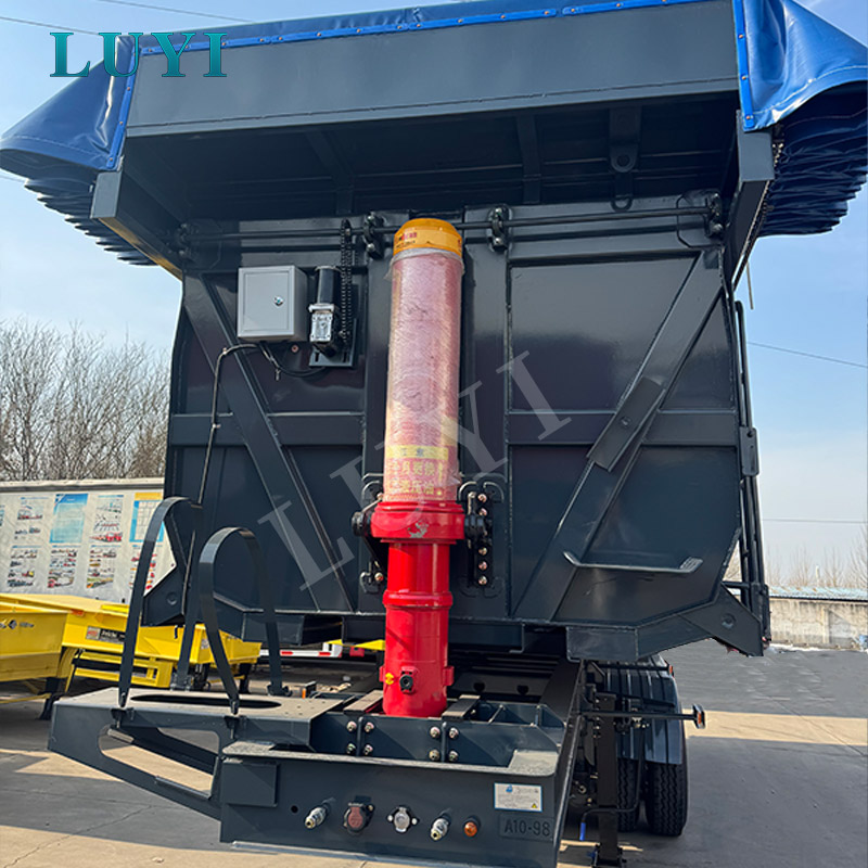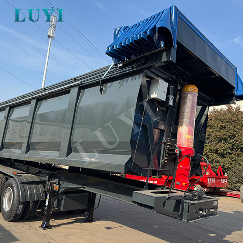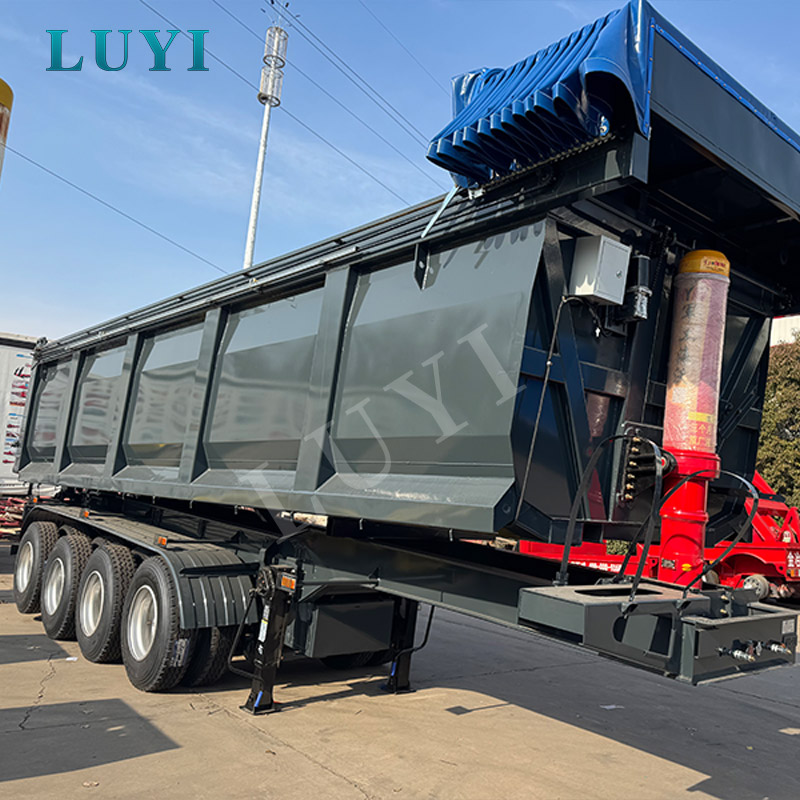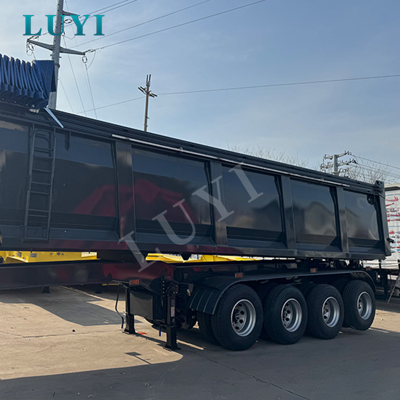 Denna LUYI semitrailer med bakre tippvagn är en semitrailer för tunga transporter som kommer från Shandong, Kina, speciellt designad för bogsering av tunga lastbilar inom gruvdrift, infrastruktur och bulklasttransporter. Tillverkad av högkvalitativt massivt stål, har släpvagnen utmärkta lastbärande prestanda med en maximal lastkapacitet på 70 ton och en tjänstevikt på endast 9 ton, vilket uppnår en optimal balans mellan tung last och lätt kaross. Dess övergripande mått är 9000mm×2550mm×3700mm, med justerbar sidovägghöjd som sträcker sig från 400mm till 1200mm för flexibelt lastutrymme.