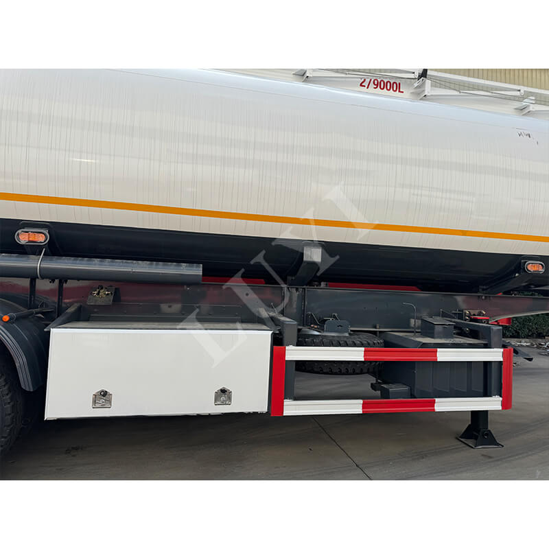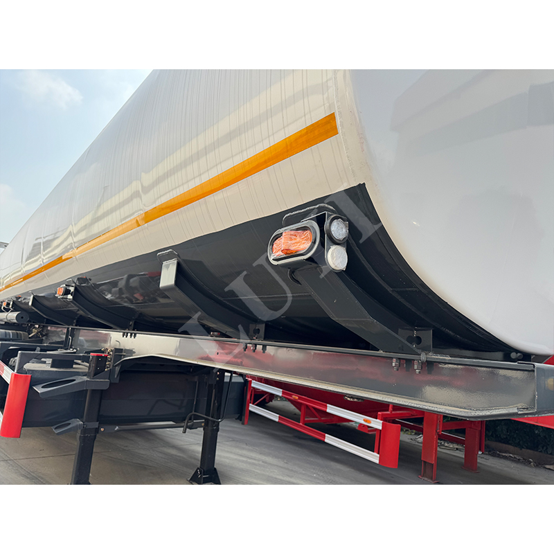 Fjädringssystemet erbjuder dubbla alternativ av mekanisk fjädring och luftfjädring, tillsammans med 12R22.5-däck för stark körstabilitet. Den är utrustad med standardstödben på 28 ton och 2-tums (50 mm) eller 3,5-tums (90 mm) kingpins, kompatibel med olika traktorer för enkel användning. Färger kan anpassas efter kundens krav, balanserar praktiska egenskaper och personalisering, vilket gör det till ett pålitligt val inom bränsletransporter över långa avstånd.