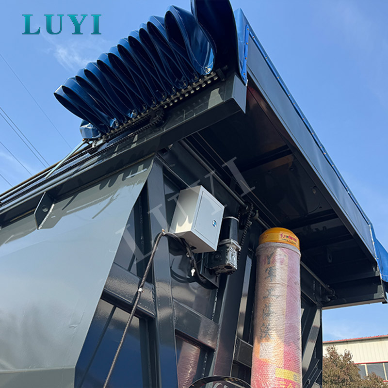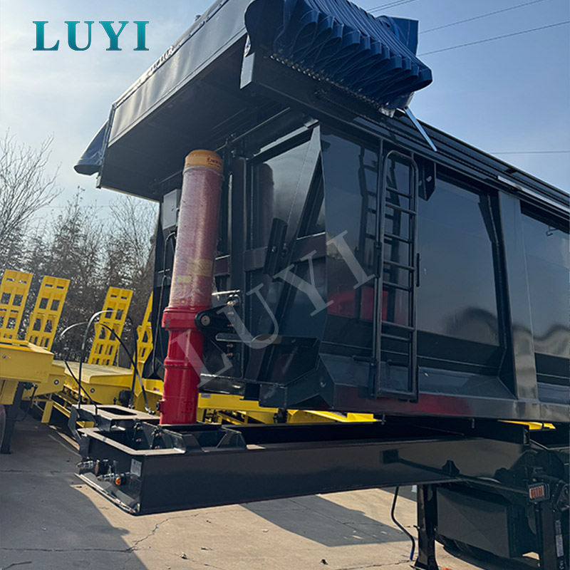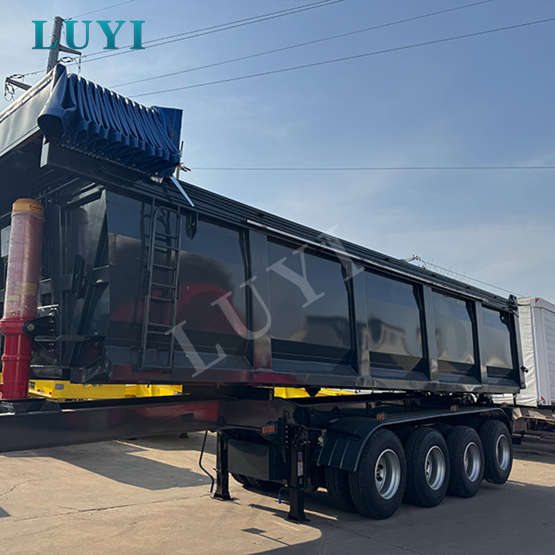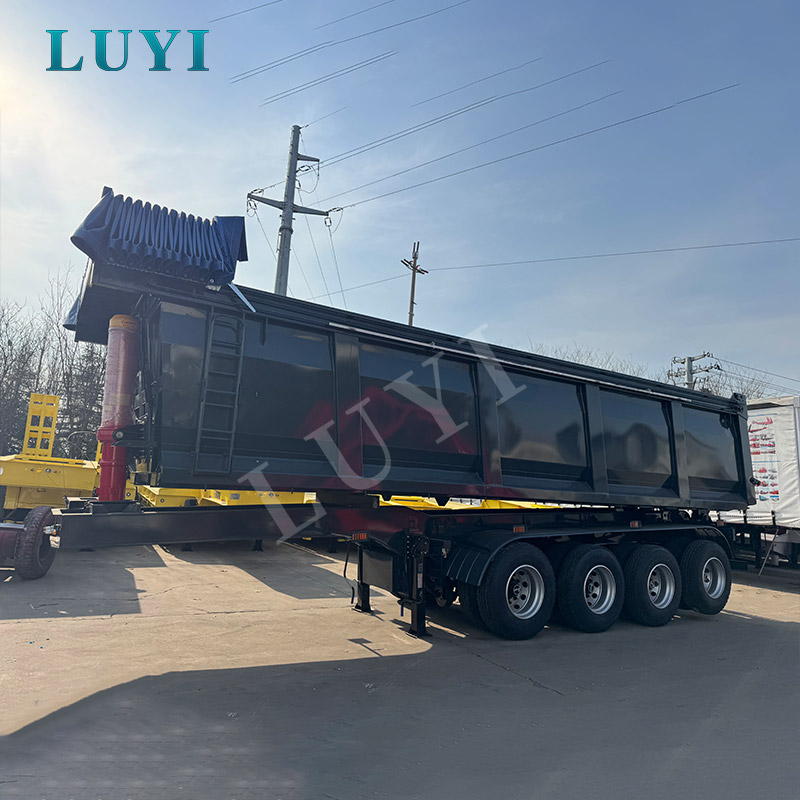 Denna LUYI semitrailer med bakre tippvagn är en semitrailer för tunga transporter som kommer från Shandong, Kina, speciellt designad för bogsering av tunga lastbilar inom gruvdrift, infrastruktur och bulklasttransporter. Tillverkad av högkvalitativt massivt stål, har släpvagnen utmärkta lastbärande prestanda med en maximal lastkapacitet på 70 ton och en tjänstevikt på endast 9 ton, vilket uppnår en optimal balans mellan tung last och lätt kaross. Dess övergripande mått är 9000mm×2550mm×3700mm, med justerbar sidovägghöjd som sträcker sig från 400mm till 1200mm för flexibelt lastutrymme.