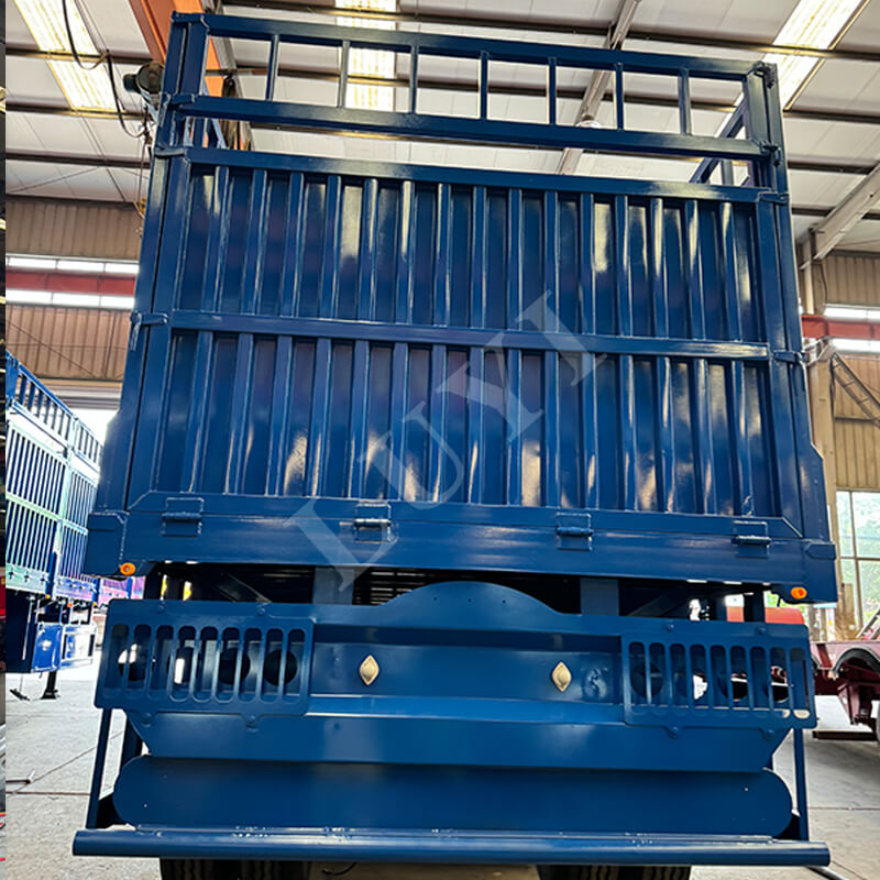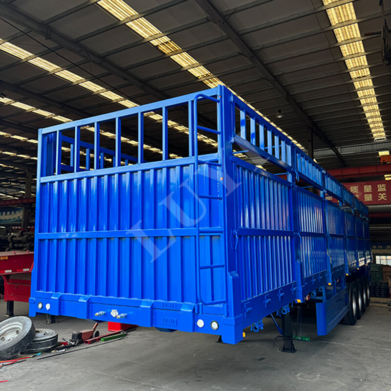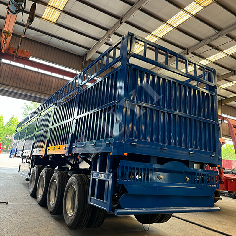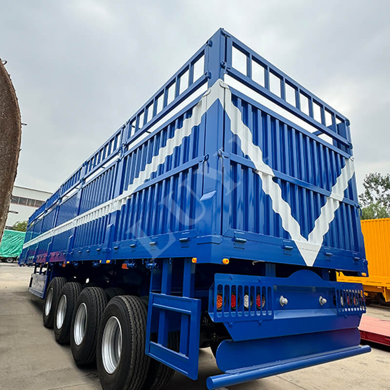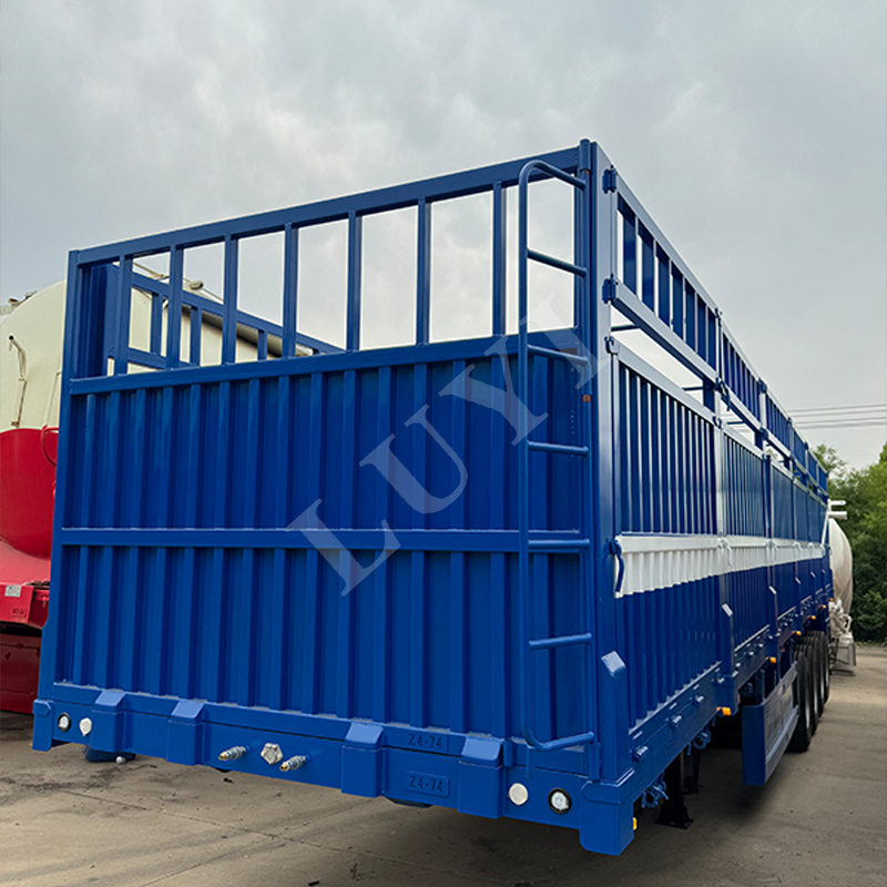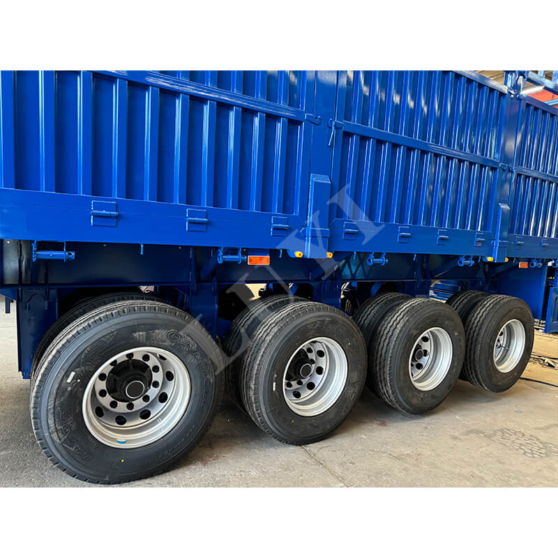 LUYI 4-axlad semitrailer med sidostängsel, en ny kraftig semitrailermodell tillverkad i Kina, är konstruerad av högkvalitativt stål. Den har en lastkapacitet på 30 ton, lämplig för transport av tungt gods som tekniska byggmaterial och kol. Fordonets hjulbas sträcker sig från 7000-8000 mm, spårvidden är 1820 mm, utrustad med 3 axlar, 12 däck och bladfjädring, vilket säkerställer stark körstabilitet och klarar av att hantera komplexa vägförhållanden med lätthet.