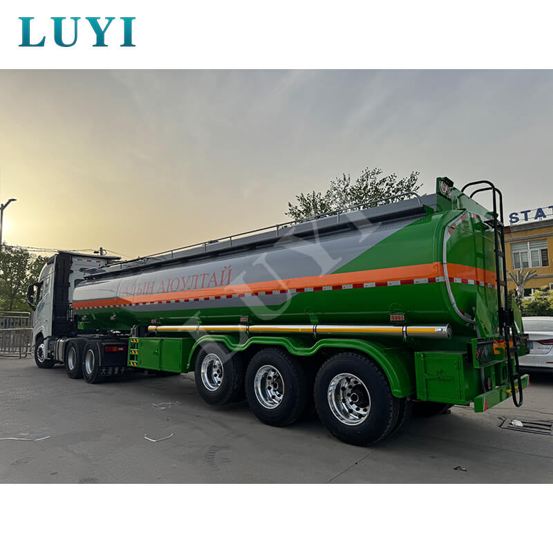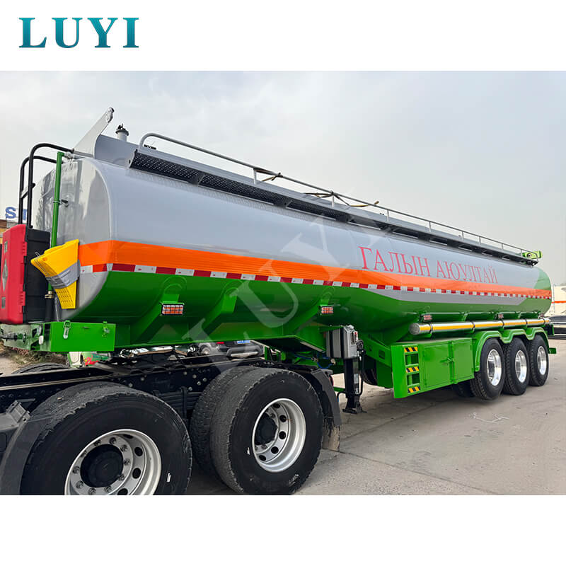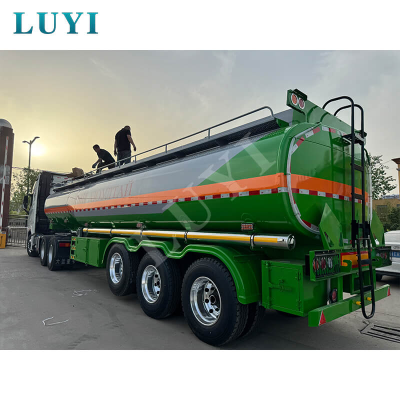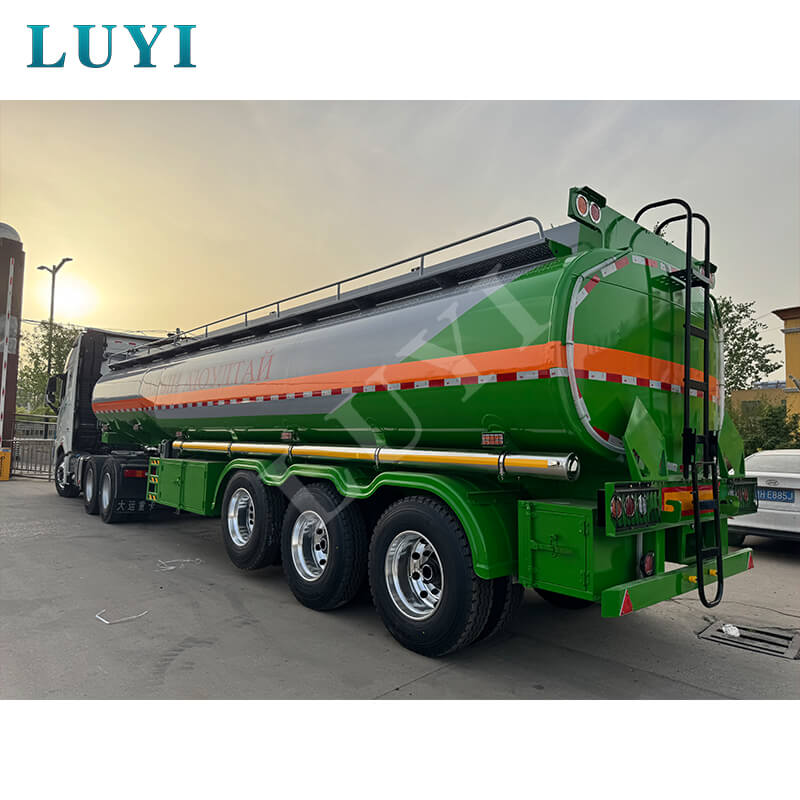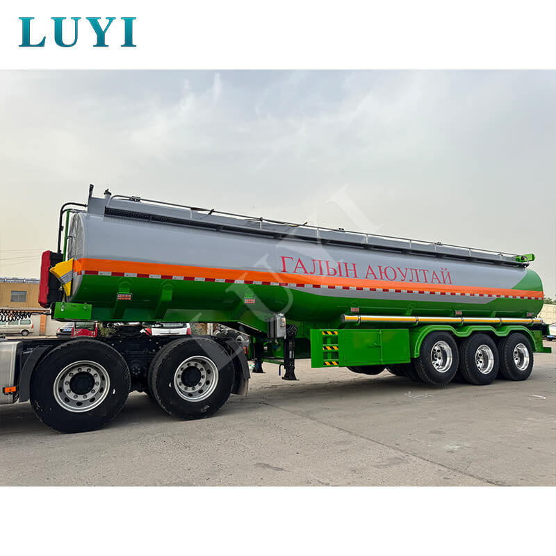 LUYI 3-axlad semitrailer för oljetank, med ursprung från Shandong, Kina, erbjuder 40m³ och 45m³ kapacitet för att möta olika bränsletransportbehov. Den har en total dimension på 12500×2500×3600MM, med en maximal nyttolast över 30 000 kg och en lastkapacitet som sträcker sig från 30T till 100T, lämpligt för tunga lastbilssläp.
