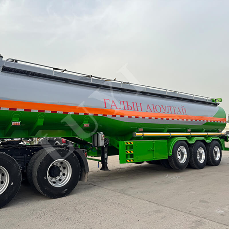 Tillverkad av högkvalitativt stål, semitrailern har pålitliga kärnkonfigurationer. Den använder axlar av märket BPW och FUWA (2/3/4 axlar tillval) och ett dubbelt fjädringssystem med mekanisk fjäder + luftfjädring för stabila åkturer. Däckspecifikationerna inkluderar 315/80R22.5, 12R22.5, 12.00R20 eller andra tillvalstyper, tillsammans med standard 28-tons landställ. Färgen kan anpassas efter kundens önskemål, och den levereras med en 6-årig efterförsäljningsgaranti, vilket garanterar säker och bekymmersfri bränsletransport.