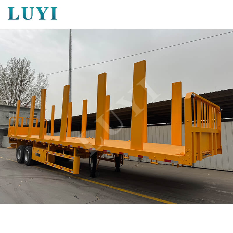 LUYI:s 2-axliga 40-tons pelarflakvagn är skräddarsydd för vedtransport med omfattande anpassningsmöjligheter. Justera höjden på skänken (30-80 cm tillgänglig) för att passa stockar, timmer eller andra träprodukter, och välj mellan rutigt stålplåt eller halkskyddsbelagda däck för bättre grepp.