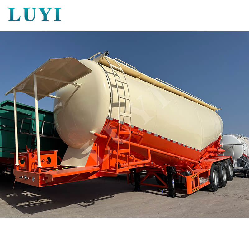 Den 3-axliga 40-kubiks-påhängsvagnen för bulkcementtank av V-typ från LUYI, Shandong-provinsen, Kina, är gjord av högkvalitativt stål och är i ett helt nytt skick. Den är speciellt konstruerad för transport av bulkcementpulver, med en maximal effektiv last som överstiger 30 000 kg, med stark bärförmåga.