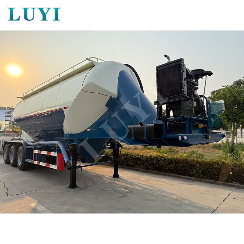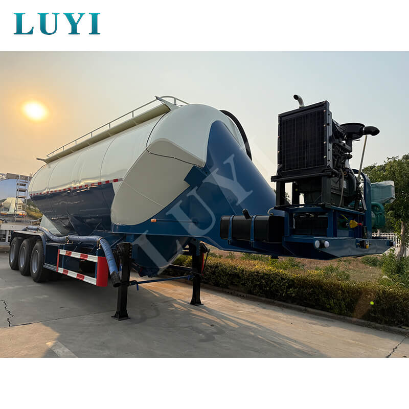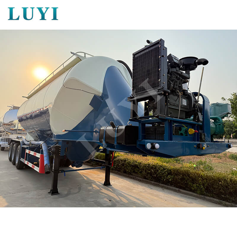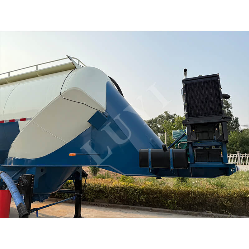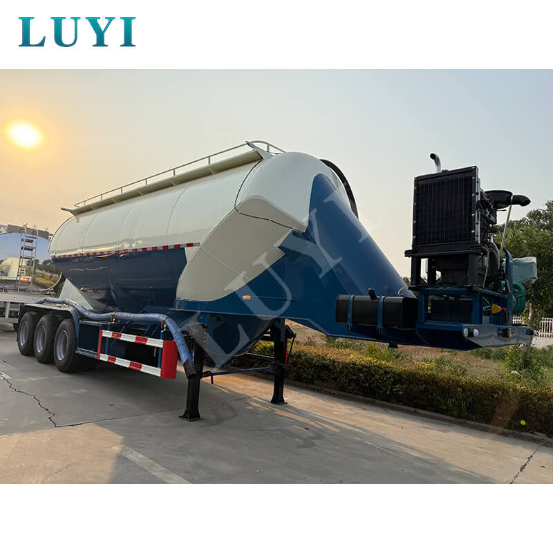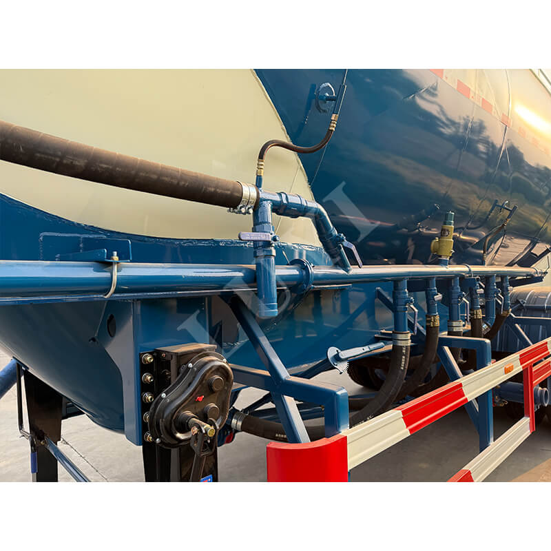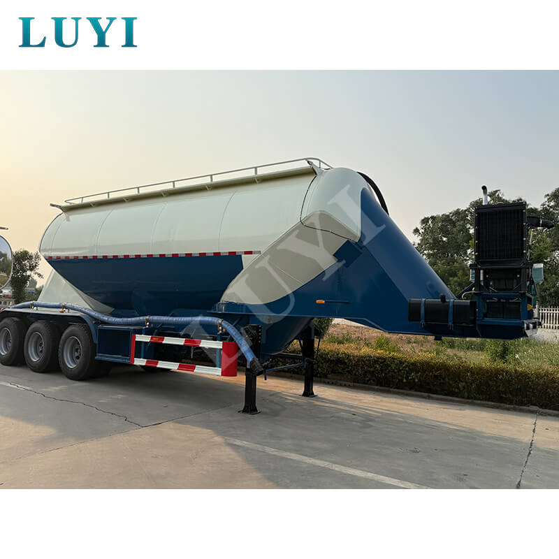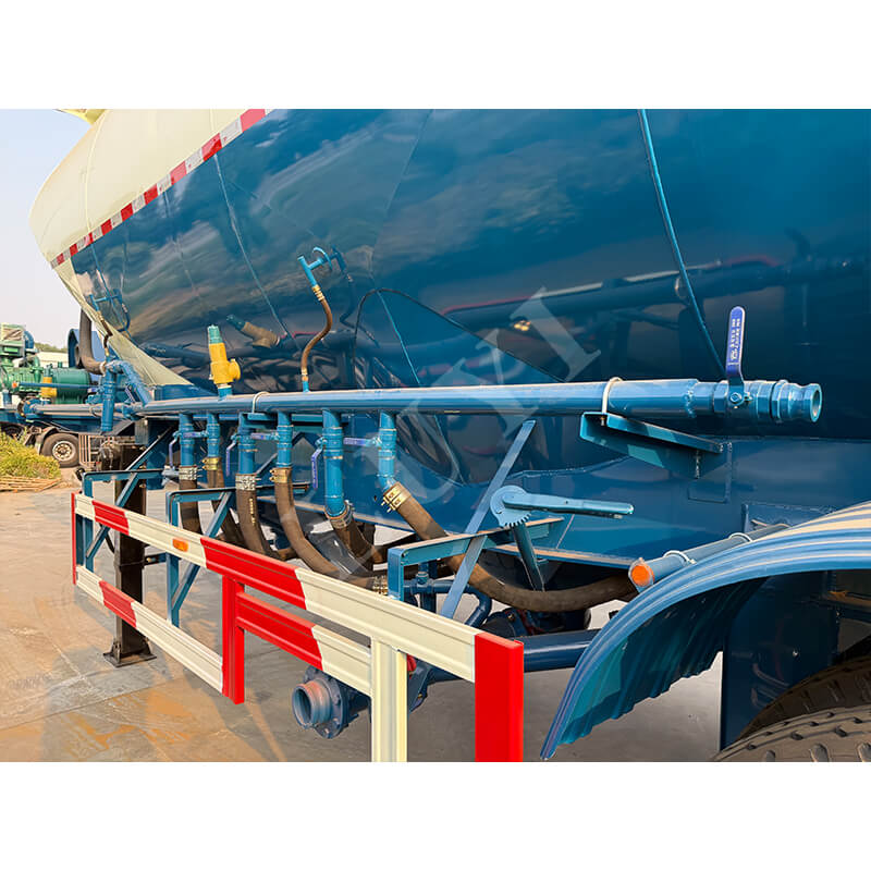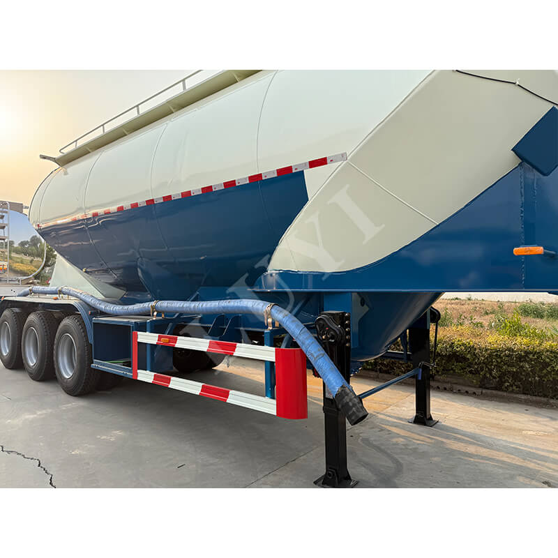 Luyi 48-kubikmeter V-Type Bulk Cement Tank Semi-Trailer (även känd som en pulvertankbil), med ursprung från Shandong-provinsen, Kina, är en högkvalitativ semitrailer speciellt designad för bulkcementpulvertransport. Hela fordonet är tillverkat av stål, med 16# kanalstål som används för sidobalkarna, vilket säkerställer en robust och hållbar struktur. Den har en maximal effektiv lastkapacitet på 48 kubikmeter, vilket effektivt kan möta de stora transportbehoven för bulkcement.