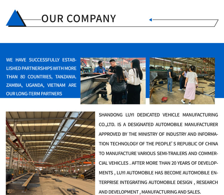 Med sitt ursprung i Shandong, Kina, är LUYI Container Flatbed Semi-Trailer en högkvalitativ semitrailer speciellt designad för tung lasttransport.Den är tillverkad av höghållfast stål och har en kroppsstorlek på 12500×2500×1500 mm. Med en robust stru......