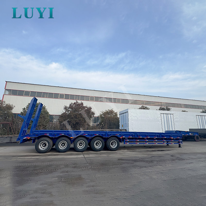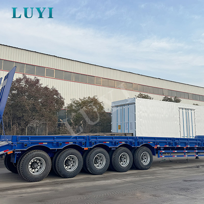Luyi 5-axliga 80-tons tunga lågbäddspåhängsvagn kommer från Shandong, Kina, och är en robust lastbilssläp konstruerad för tung lasttransport. Den är byggd av högkvalitativt stål och har dimensioner på 130003000178 mm och en maximal lastkapacitet på 80 000 kg, perfekt för att enkelt transportera olika tung utrustning.