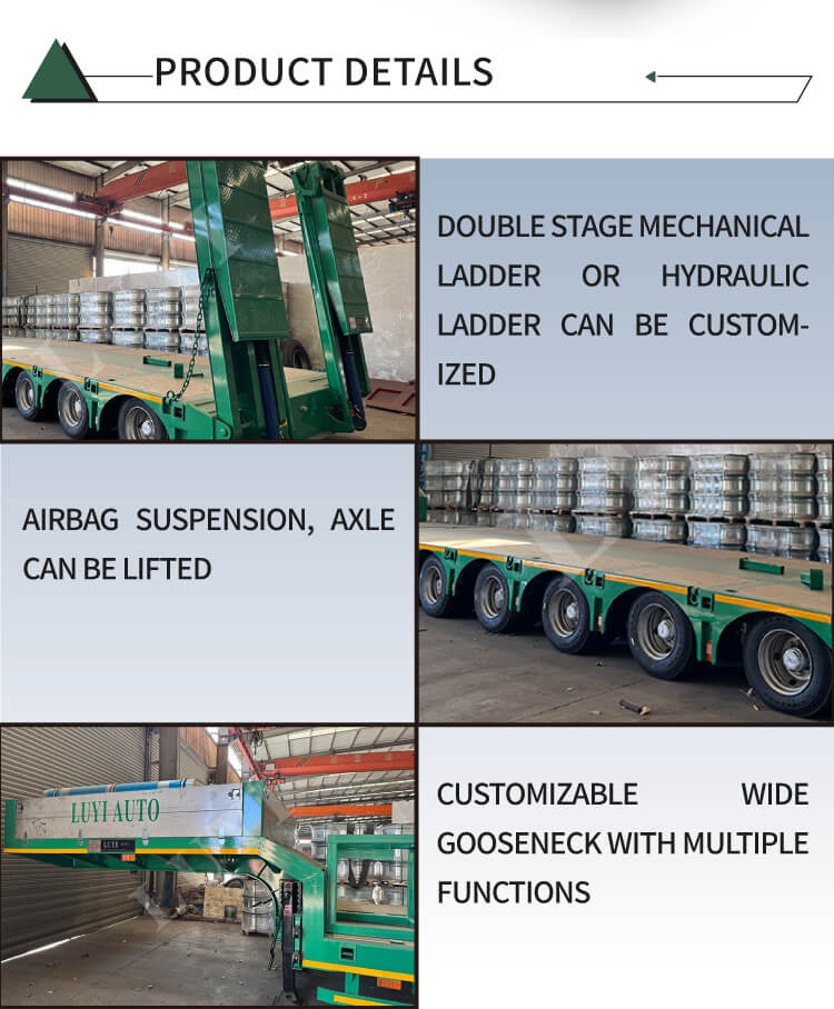 Luyi 6-axlade 100-tons lågbäddspåhängsvagn, som kommer från Shandong-provinsen, Kina, är en helt ny lastbilssläp speciellt utformad för transport av tung utrustning, som effektivt kan möta behoven för lastning.