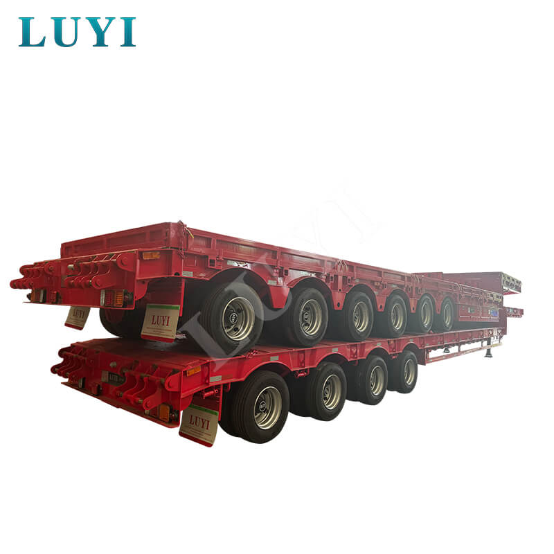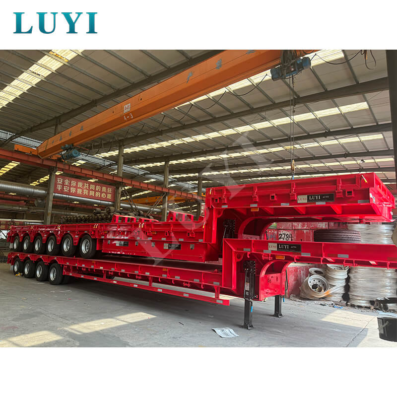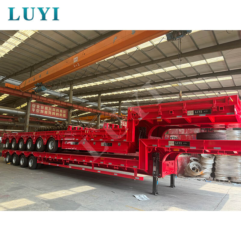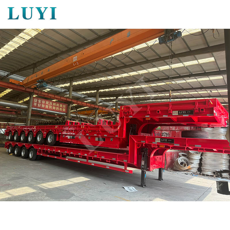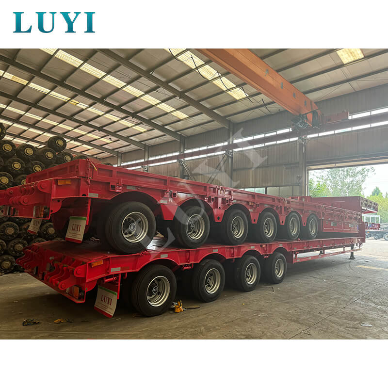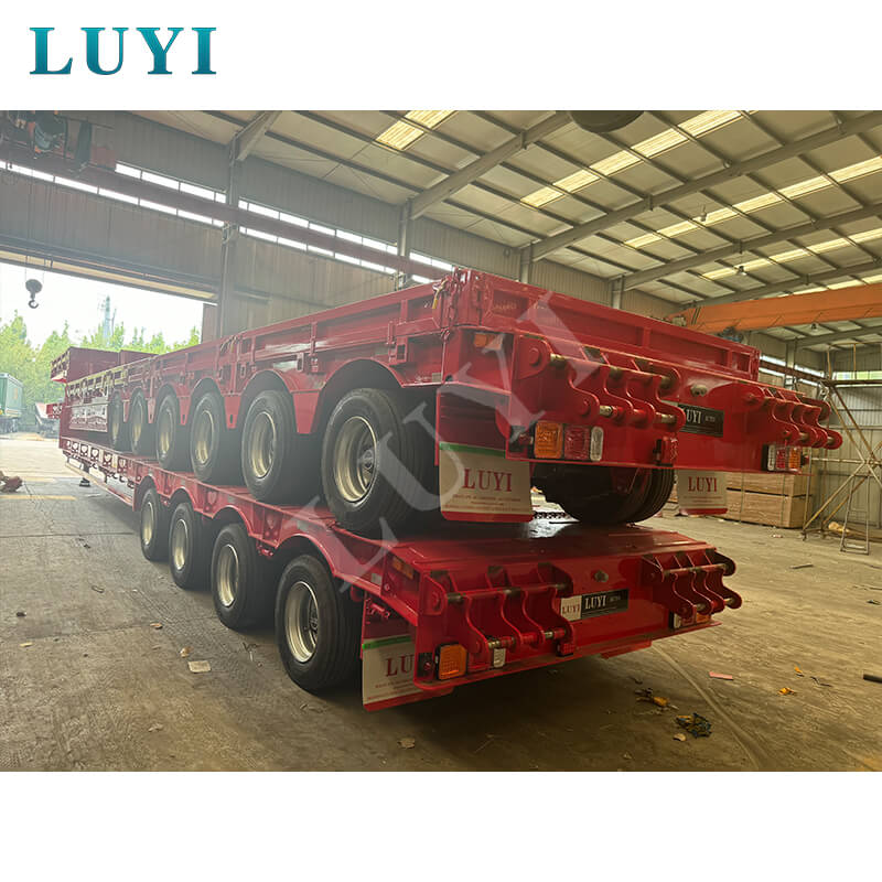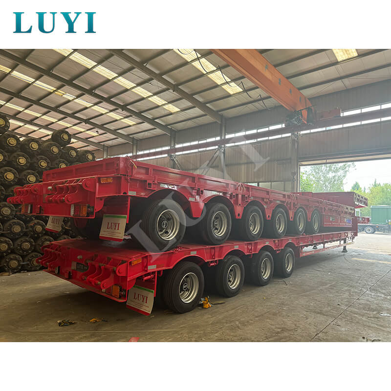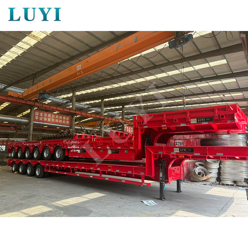 Luyi 6-axliga 80-100 ton infällbara stålcontainer Lowboy Semi-Trailer kommer från Shandong-provinsen, Kina och är en högeffektiv lastbilssläp som är designad speciellt för containertransport. Konstruerad med högkvalitativt stål, mäter den 1300025001350 mm och erbjuder valfria axelkonfigurationer med 3/4/5/6 axlar, utrustad med välkända FUWA-märkta axlar. Dess maximala effektiva nyttolast sträcker sig från 20001 till 25000 kg.