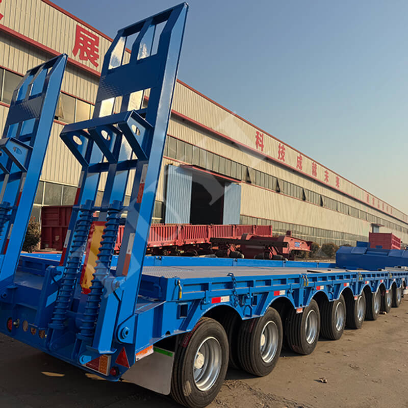 När det gäller konfigurationen använder den ett bromssystem med dubbla linjer för att säkerställa körsäkerhet, standardstödben på 28 ton för stabilt stöd och JOST-kungspinnar tillgängliga i 2-tums (50 mm) eller 3,5-tums (90 mm) alternativ. Färger kan anpassas av kunderna, vilket ger en effektiv och pålitlig lösning för ultratunga transporter.