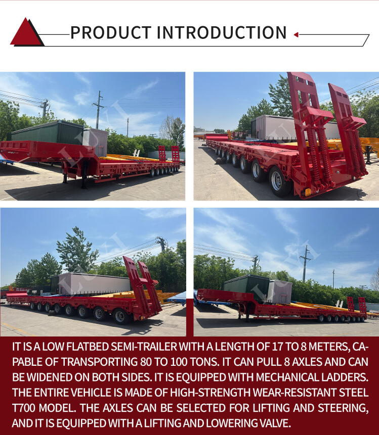 Den 8-axlade 17 m utdragbara svanhalsade lågbäddssläpvagnen från LUYI, som kommer från Shandong, Kina, är en högpresterande semitrailer speciellt designad för transport av tung utrustning.