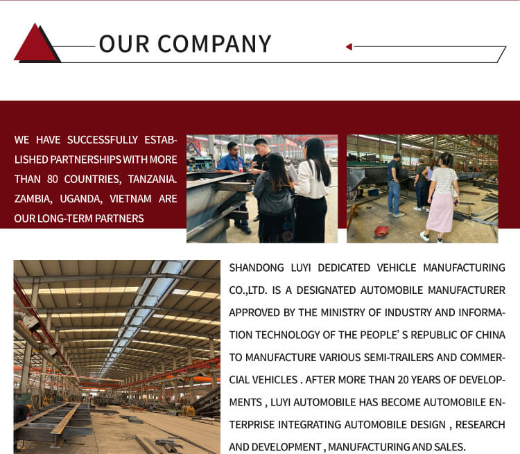 Nyckelkomponenter har avancerade konfigurationer, inklusive standard 28-tons landningsställ och 2-tums (50 mm) eller 3,5-tums (90 mm) JOST-konststift, vilket garanterar anslutningstillförlitlighet och användarvänlighet. Karossfärgen stödjer kundanpassning och kan justeras flexibelt efter behov för att möta personliga användningskrav, vilket gör den till ett idealiskt val inom tunga transporter.