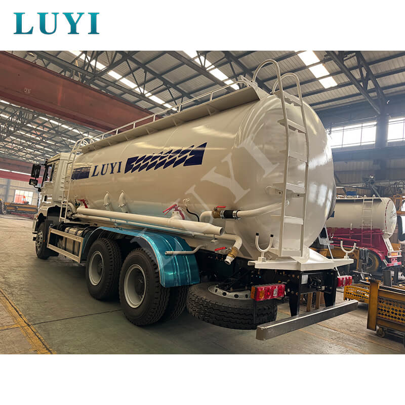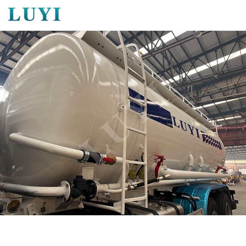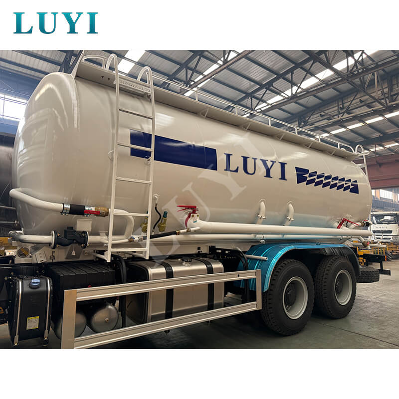 Luyi 6x4 Powder/Dry Flugaska/Cement Bulk Tank Semi-Trailer, även känd som en bulk cement semitrailer, kommer från Shandong-provinsen, Kina. Det är en professionell påhängsvagn speciellt utformad för att transportera bulkcementpulver, kompatibel med lastbilar för att underlätta effektiv godstransport.