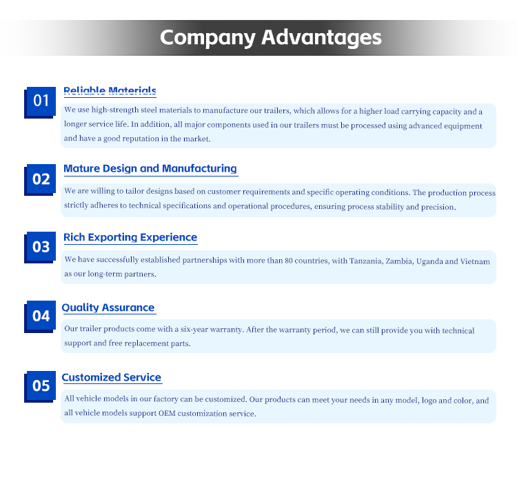Skicka oss din förfrågan för att få en skräddarsydd offert baserad på dina faktiska transportbehov. Låt oss veta släpvagnstyp, last eller nyttolast, vägförhållanden, destination och kvantitet, så kommer vårt team att svara med en lämplig rekommendation så snabbt som möjligt.
