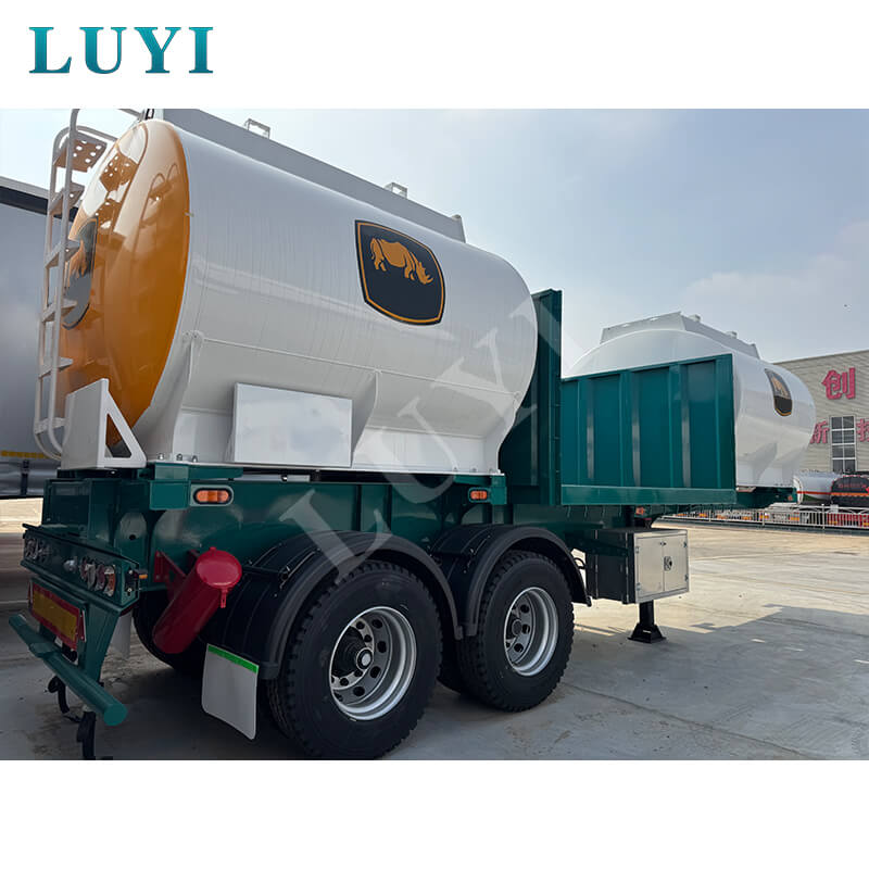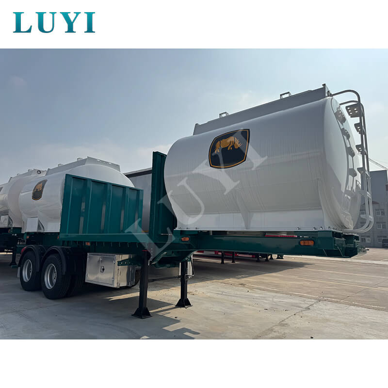 Detta är LUYI-märkt V-formad bulkcementtank semitrailer, tillverkad i Shandong, Kina, speciellt designad för transport av bulkpulvermaterial med utmärkt lastbärande prestanda och hög användbarhet. Släpvagnens storlek är 1250025003500MM, tankkroppen är gjord av högkvalitativt stål med solid struktur och god lufttäthet. Dess maximala nyttolast är mer än 30 000 kg, anpassningsbar i 40 ton och 50 tons specifikationer för att möta olika behov av bulklast.